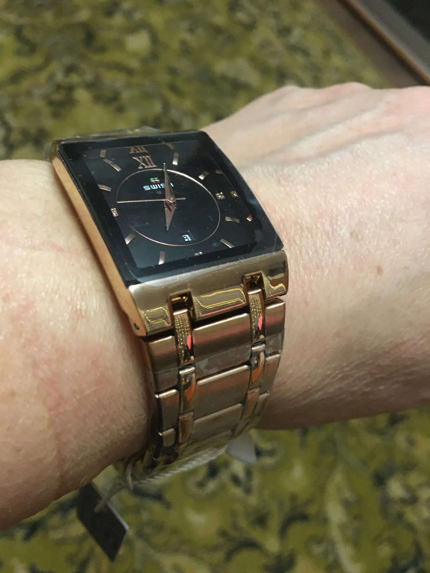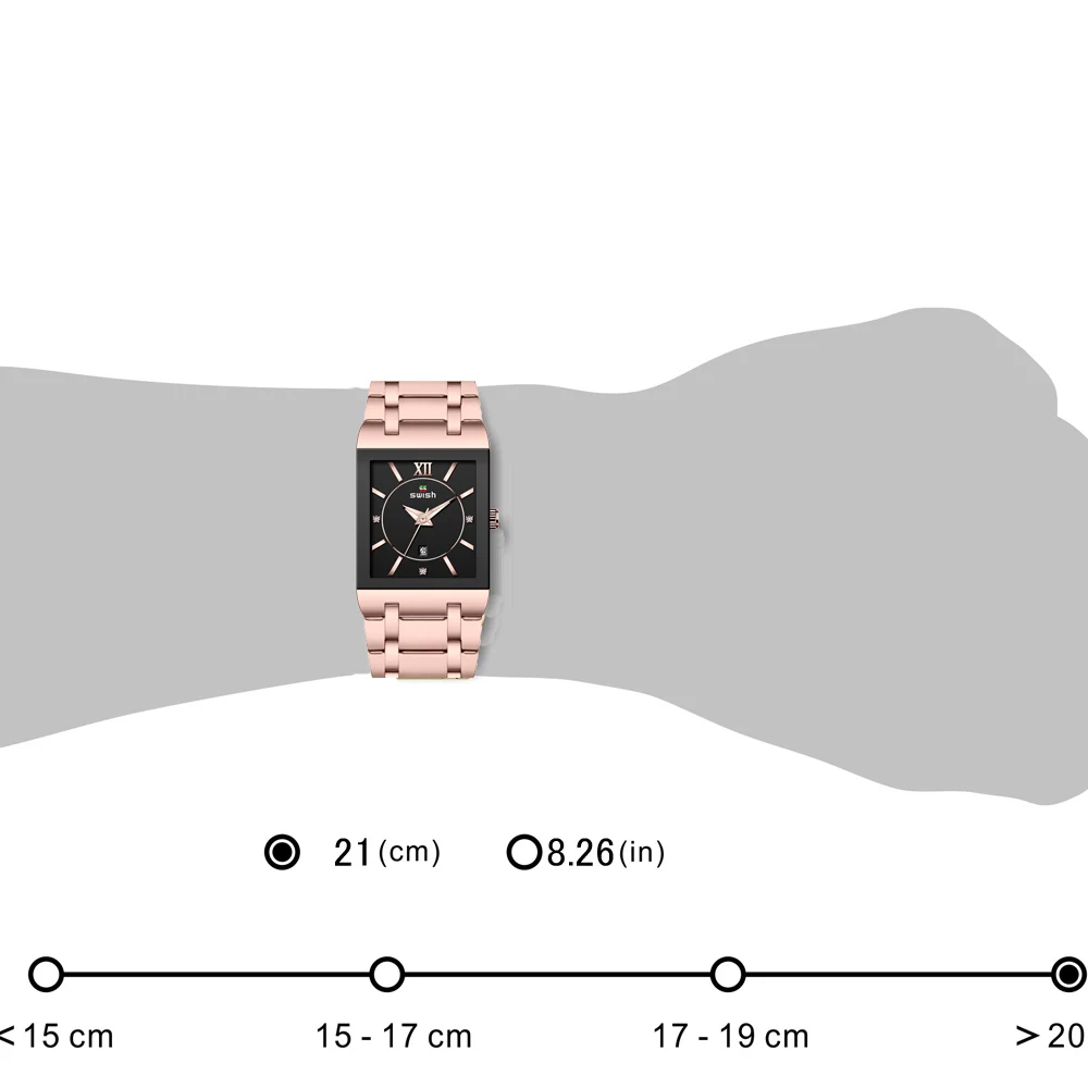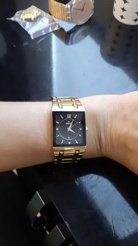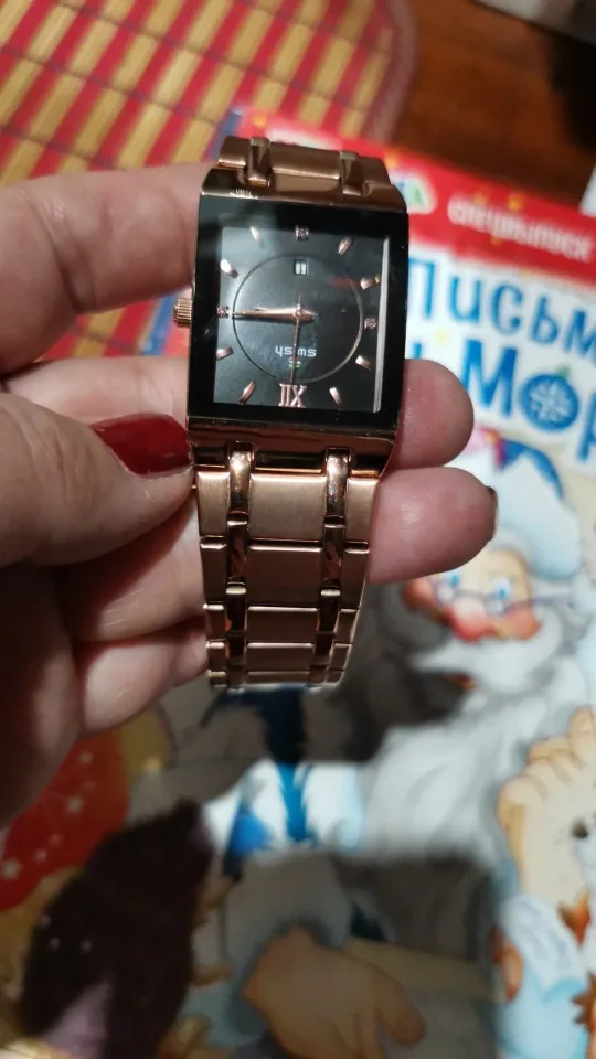 Я беспокоился, что квадратный циферблат может поместиться на запястье, это просто идеально подходит для моего запястья, когда его надеть, стильно! Великолепно! Очки с часами такие прозрачные. У меня все еще есть часы и они в идеальном состоянии, я планирую заказать розовое золото.