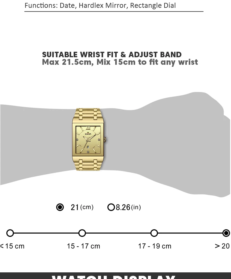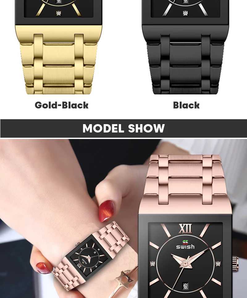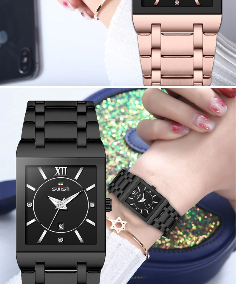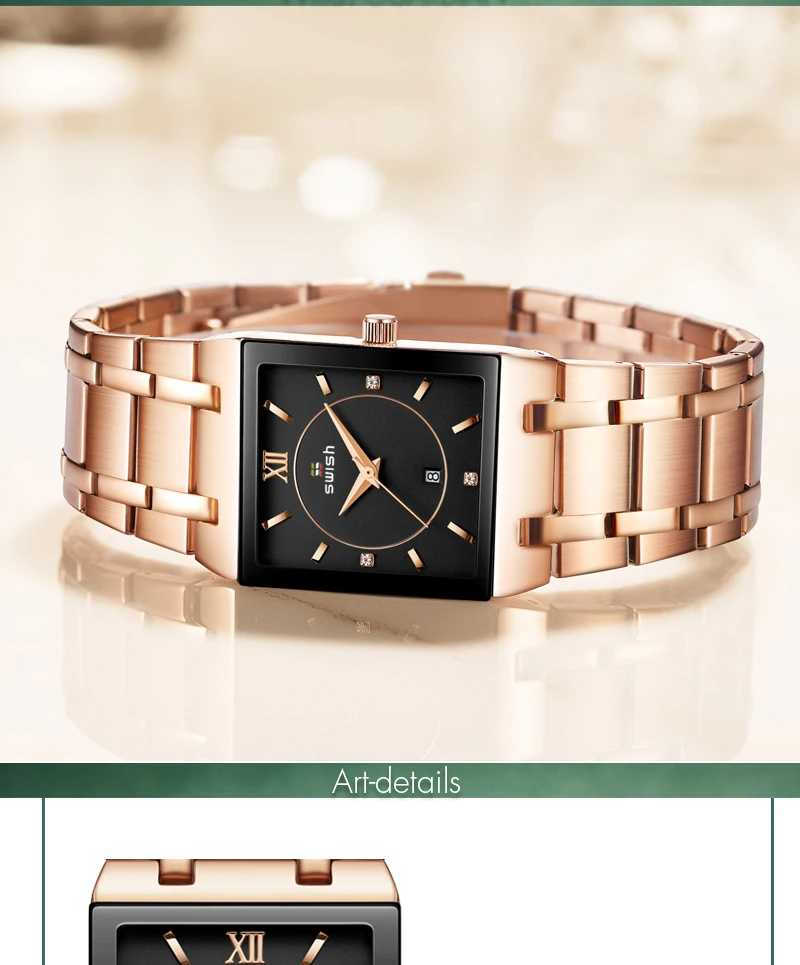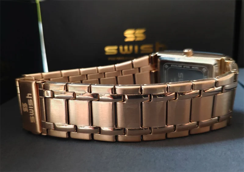 Я беспокоился, что квадратный циферблат может поместиться на запястье, это просто идеально подходит для моего запястья, когда его надеть, стильно! Великолепно! Очки с часами такие прозрачные. У меня все еще есть часы и они в идеальном состоянии, я планирую заказать розовое золото.