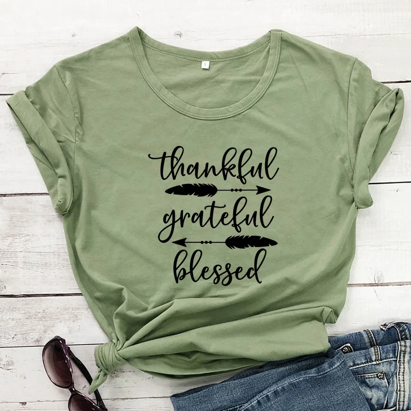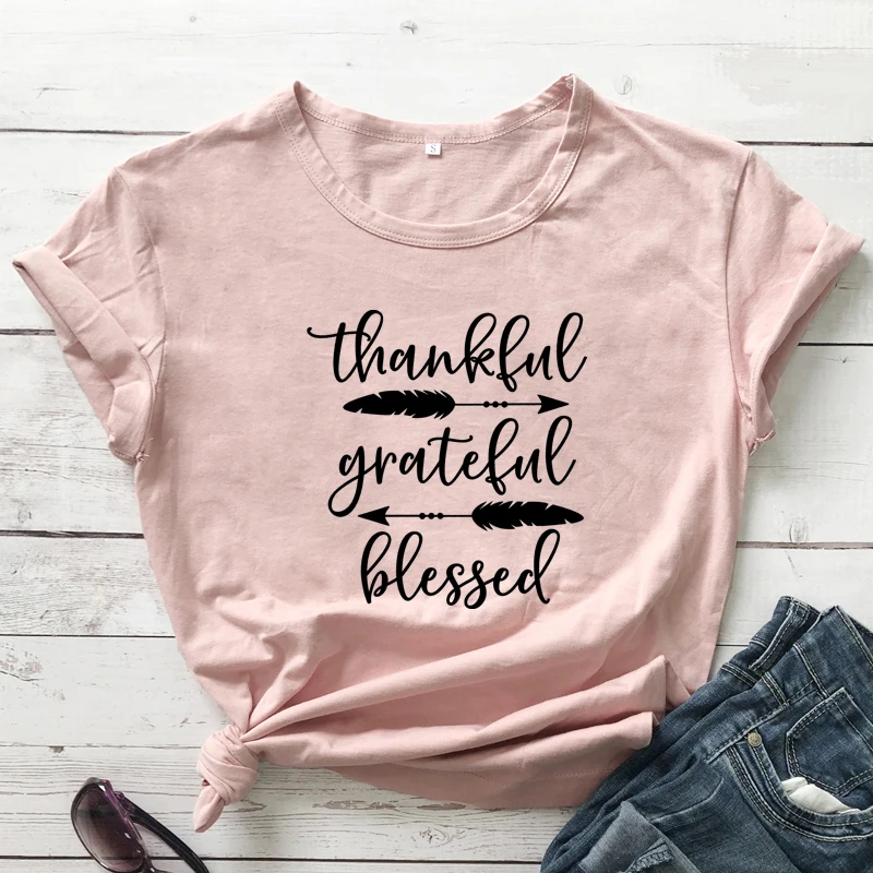 Спасибо, благодарная, благословенная Футболка с принтом стрелы, эстетическая Осенняя футболка на День Благодарения, католические женские графические христианские топы, футболки