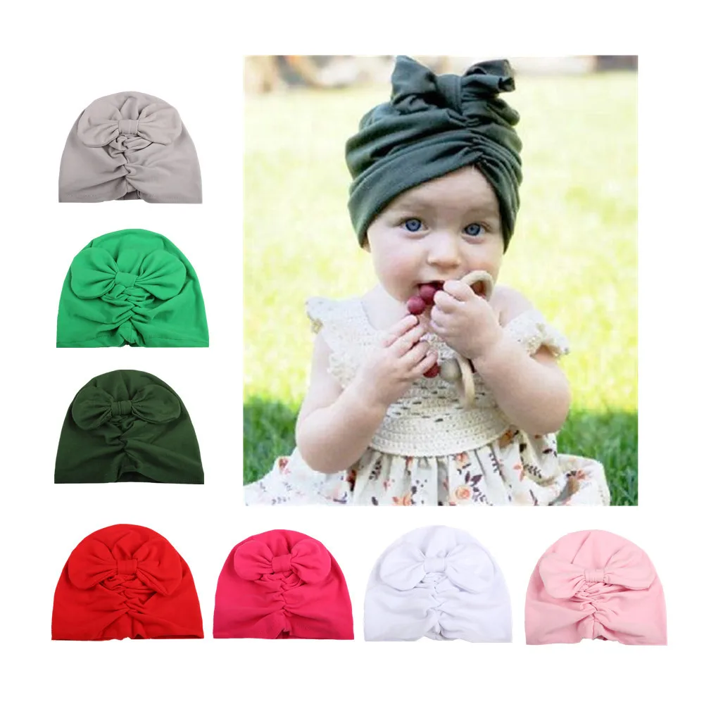 Детская повязка на голову, шляпа с бантом, хлопковая эластичная повязка на голову, повязка на голову для младенцев, шапочка, головной убор для девочек, детские аксессуары для волос