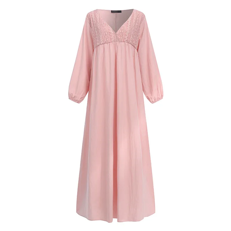 Женское богемное длинное платье, сексуальное кружевное платье макси с v-образным вырезом и рукавами-фонариками, Летние Повседневные Вечерние платья свободного покроя с оборками размера плюс