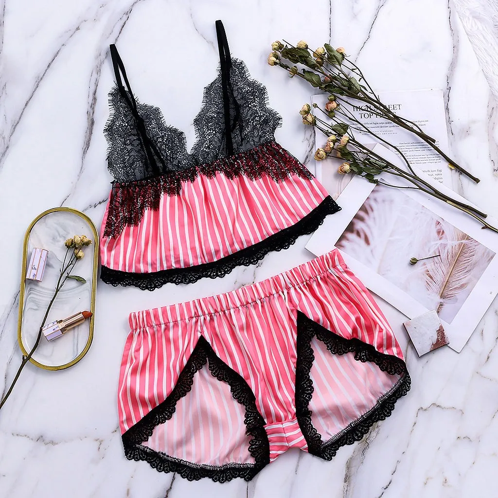 Кружевной сетчатый бюстгальтер, корсет, топ, трусики, комплекты ночного белья, кружевное белье, шелковая пижама, атласная пижама 2020, Женская домашняя одежда FN70