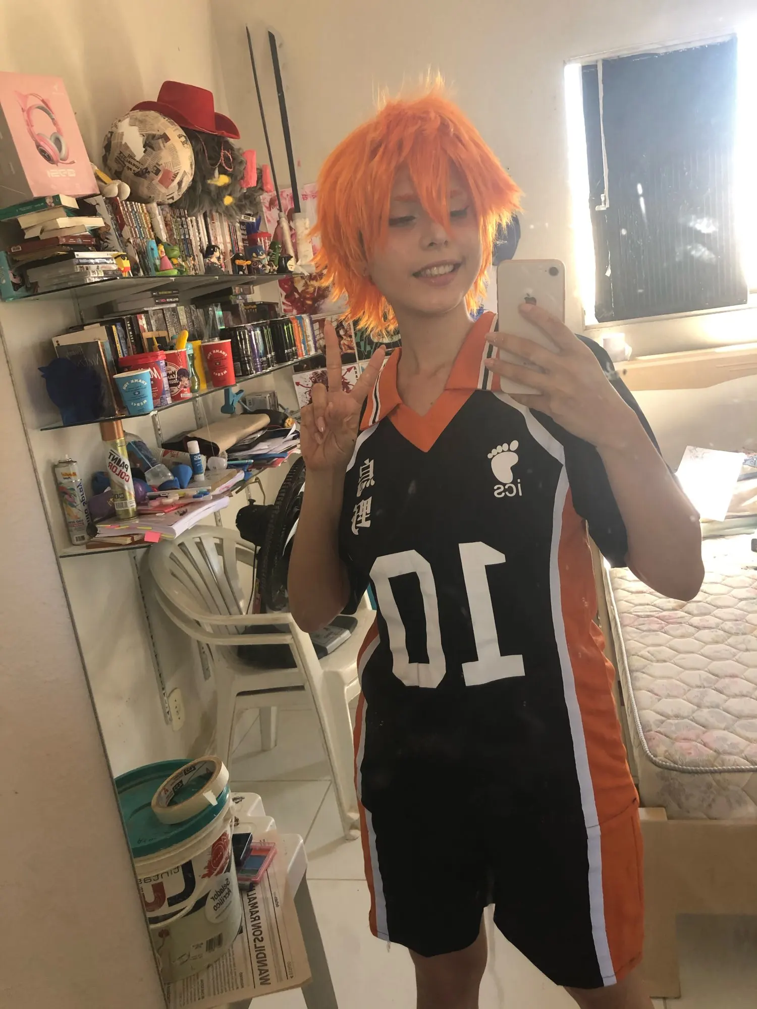 Косплей хорошо подходит, только наколенники, не слишком эластичные, поэтому в них нет подушечек, нужно только разрезать челку на парике. Эластичная резинка на шортах делает его маленьким, но очень растягивается