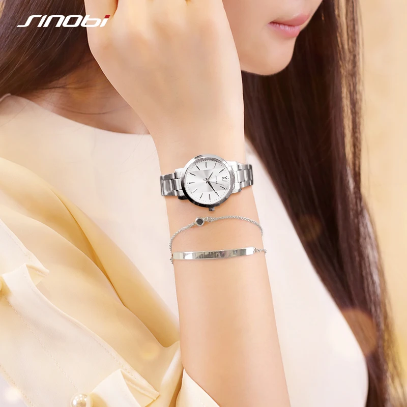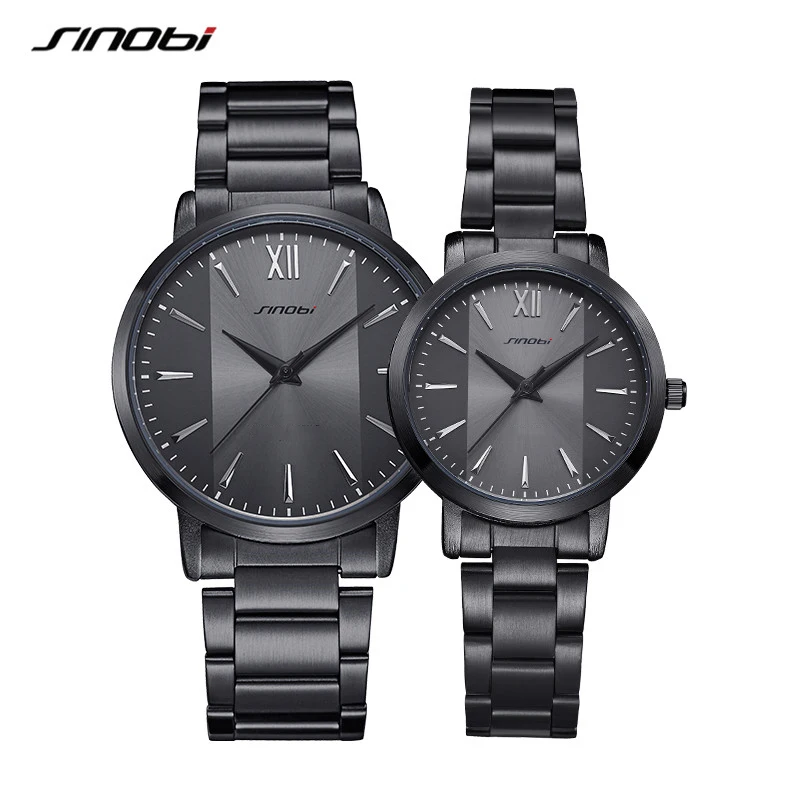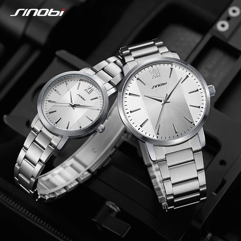 Часы наручные SINOBI женскиемужские кварцевые, элегантные брендовые роскошные стальные, для влюбленных