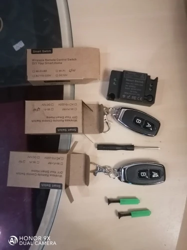 Упаковано было хорошо: Почтовый пакет с пузырьками, внутри него мешочек тоже с пузырьками, внутри него картонные коробочки, а внутри них уже сами устройства. Продавец молодец в плане упаковки хорошо постарался, спасибо за это :) Всё содержимое выглядит новым и качественным. В подарок продавец ещё положил отвёртку и два самореза для крепления корпуса. В комплекте идёт плата которая уже находится в пластмассовом корпусе, и ещё в комплекте пульт в котором уже стоит батарейка. Пульт работает, при нажатии загорается лампочка на пульте. А вот плату я ещё не проверял, попозже проверю и дополню отзыв. Так же я записал видео-обзор: youtu.Be/GOfjSspOurg