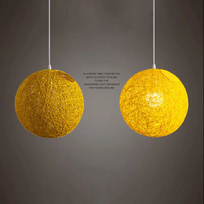 Желтый бамбук, ротанг и пеньковый шар люстра индивидуальное творчество сферическое ротанговое гнездо абажур