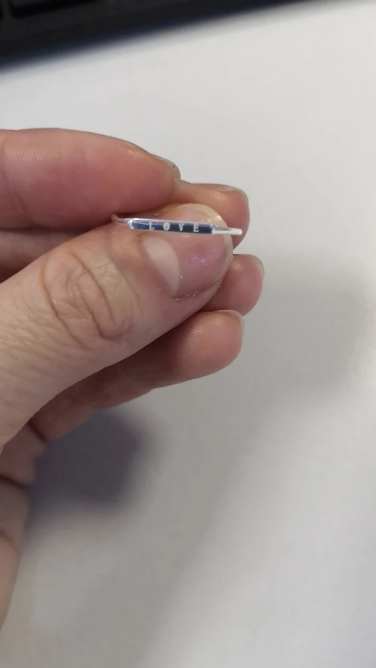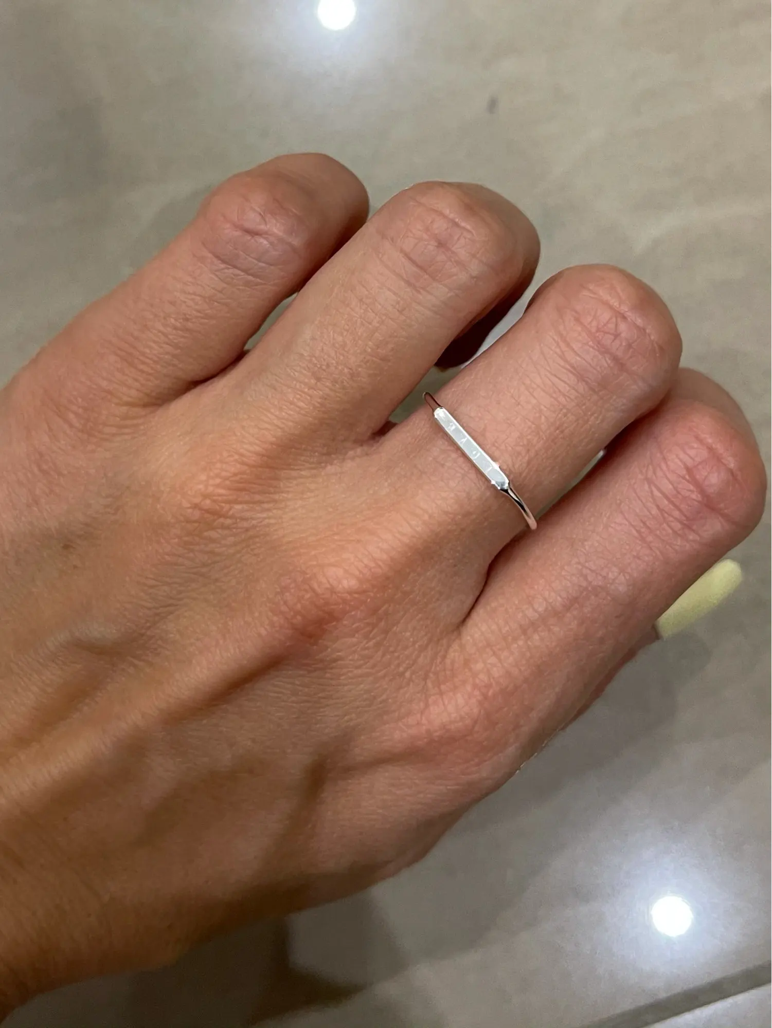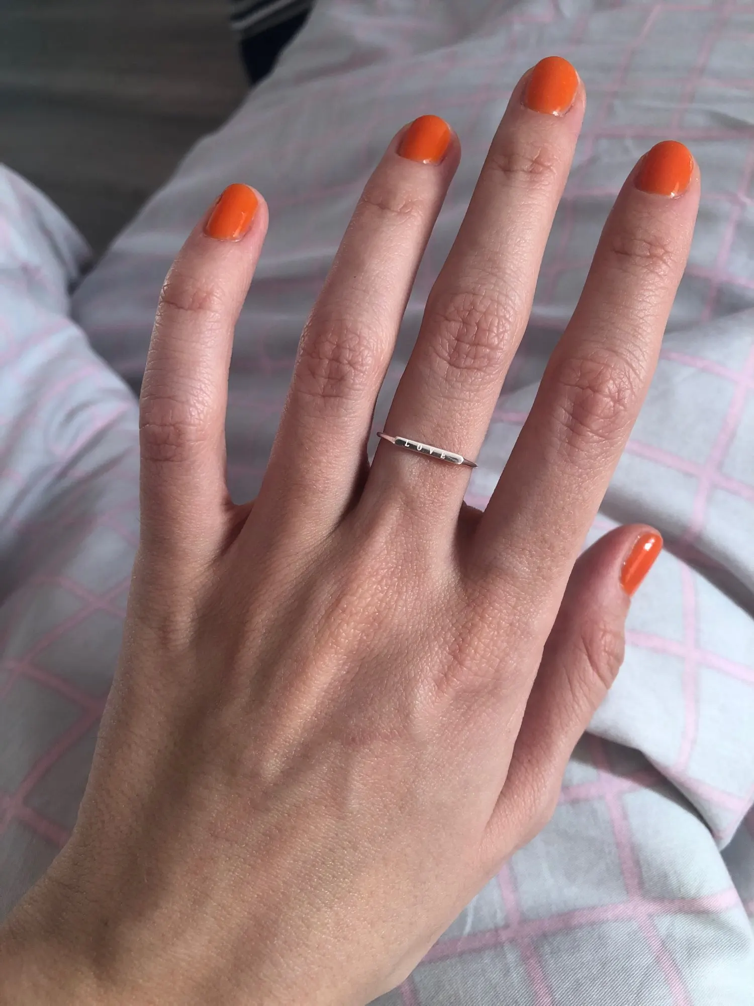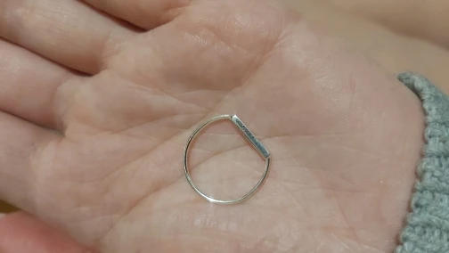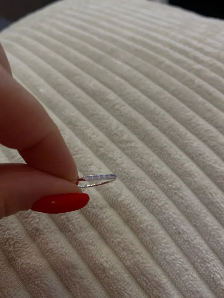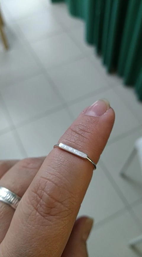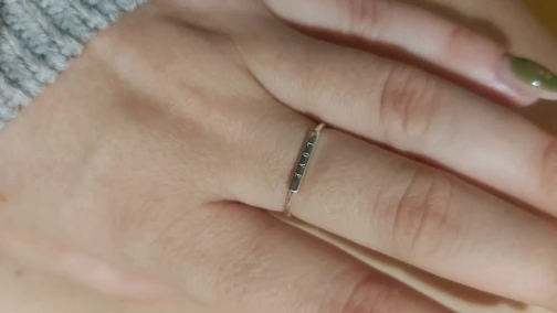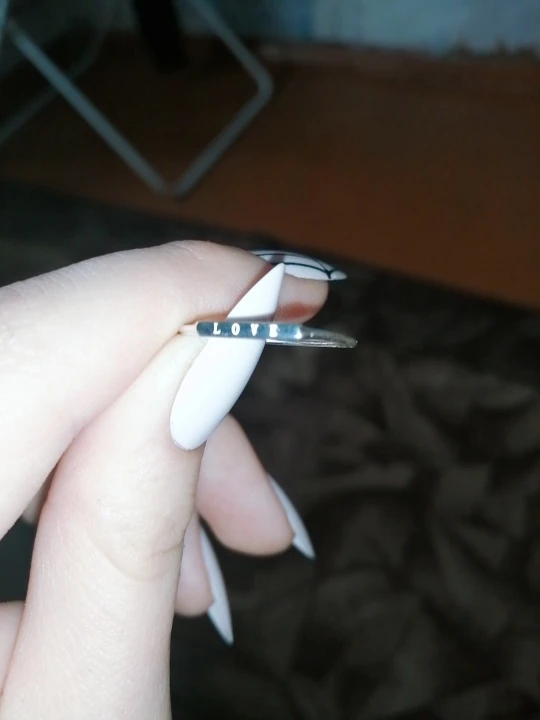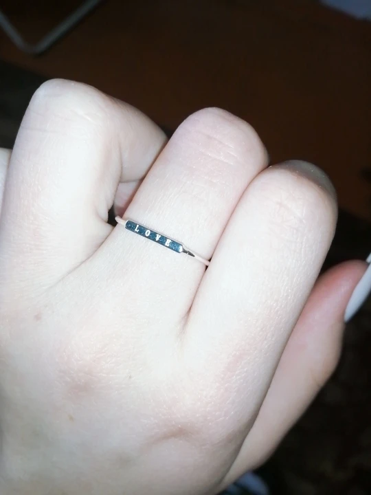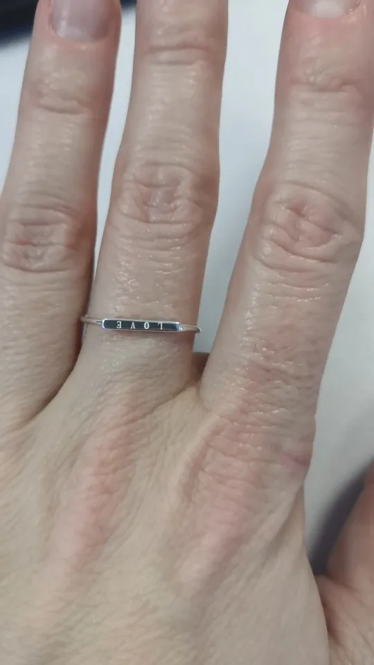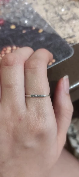 Кольцо ну очень тонкое,но описанию соответствует. Надпись на кольце видна, только при очень близком рассмотрении. Ещё оно постоянно перекручивается. Если хочется минималистичное украшение, то оно прекрасно подходит