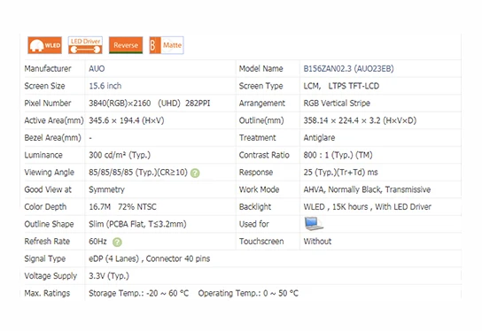 B156ZAN02.3 UHD 3840*2160 4K IPS панель для AUO 15,6-дюймовый ЖК-экран для ноутбука 72% NTSC RGB eDP 4 полосы 40pin Тонкая матовая матрица