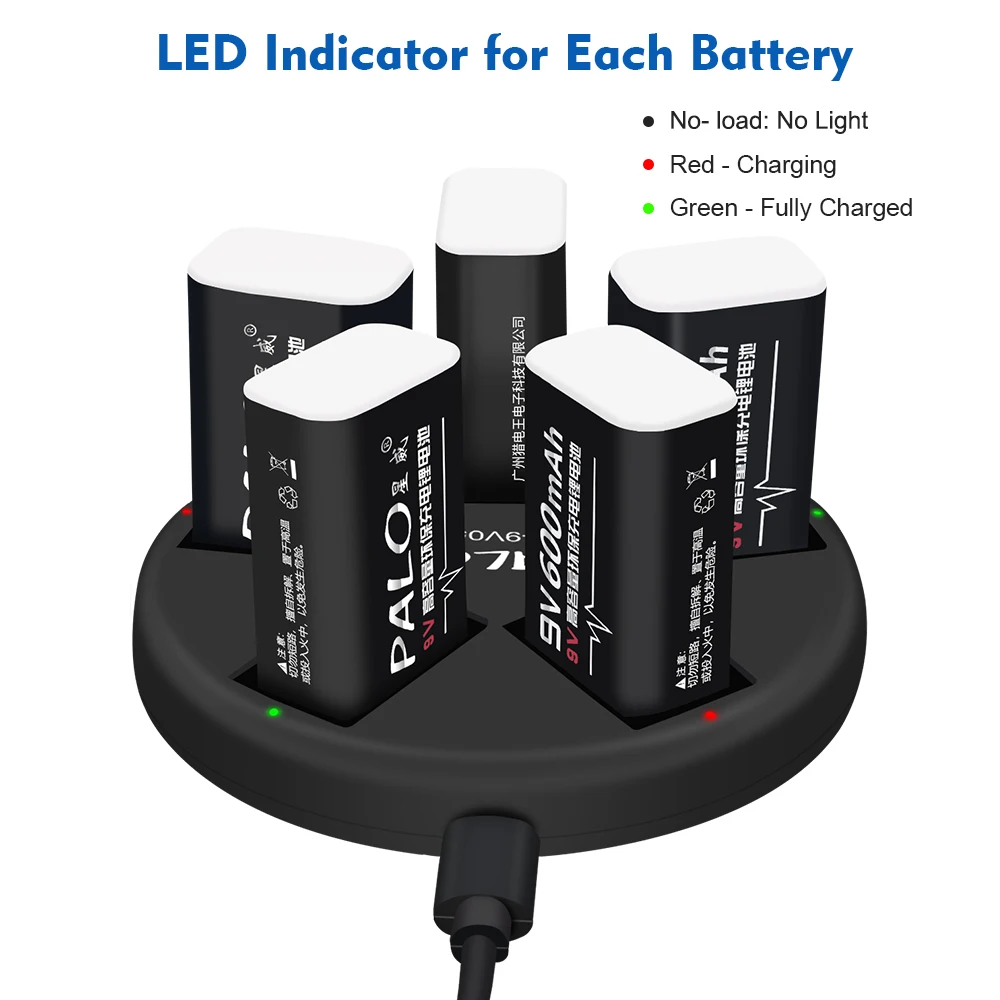 Аккумуляторная батарея PALO 9 В, литий-ионная батарея 9 В 6f22 + зарядное устройство 9 В, 5 слотов, зарядное устройство usb 9 В 6f22
