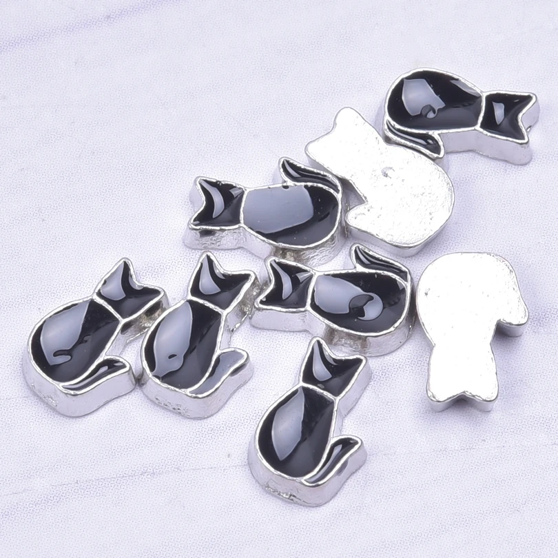 20 шт.лот черные Симпатичные животные Кот Плавающие Подвески внутри medизменения жилой память медальон ожерелья Diy ювелирные изделия оптовая продажа