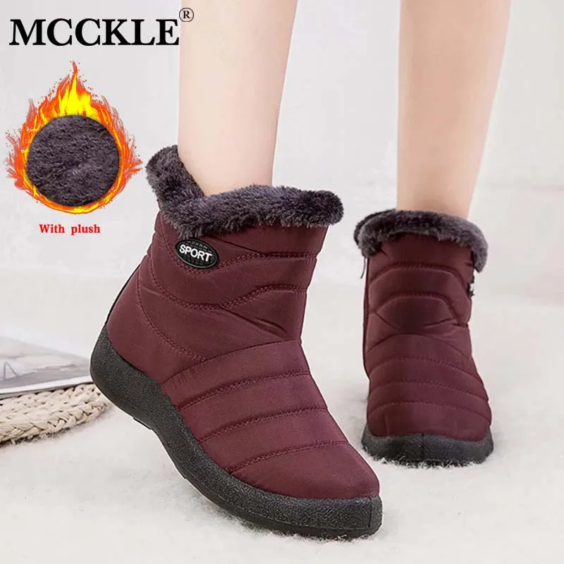Женские зимние ботинки MCCKLE, женские толстые теплые плюшевые водонепроницаемые Нескользящие ботильоны на платформе, зимняя обувь с хлопковой подкладкой размера плюс 43