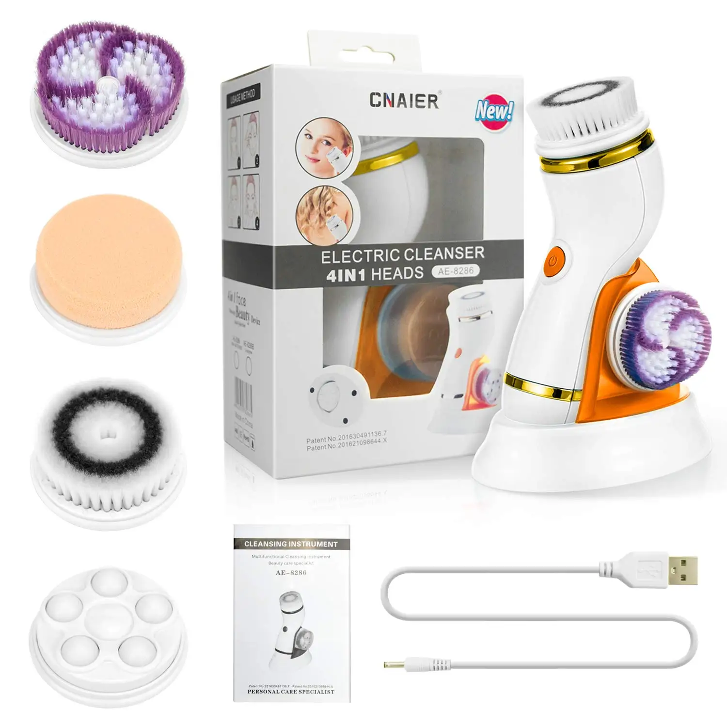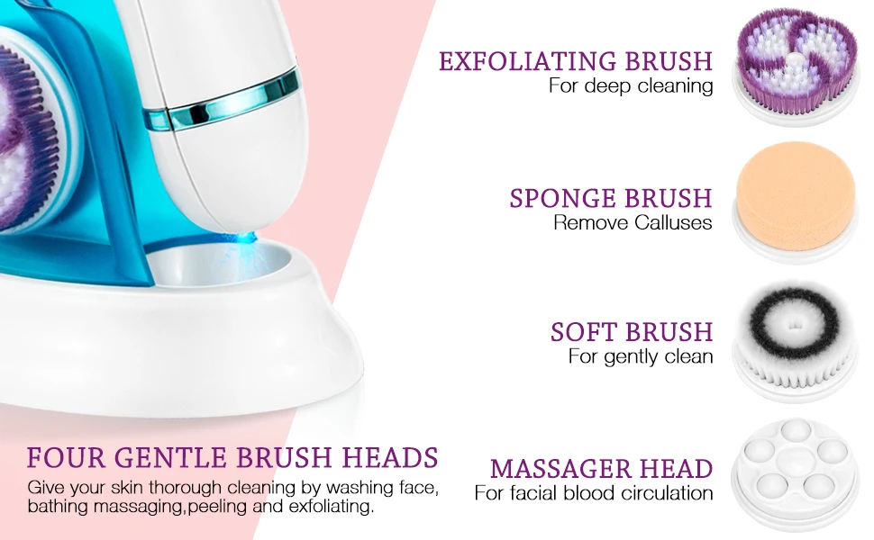 Электрическая щетка для чистки лица с 4 головками, 2 скорости
