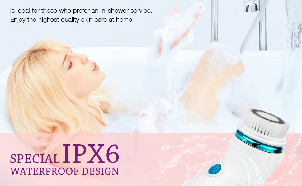 Ipводонепроницаемый IPV6: Эта электрическая кисть для лица имеет водонепроницаемый дизайн IP65, идеально подходит для гостей, предпочитающих душ или ванну