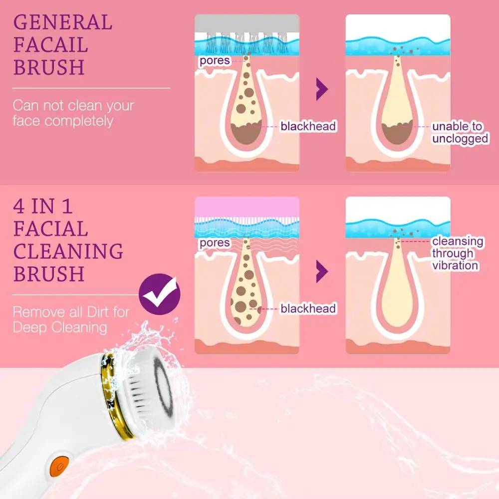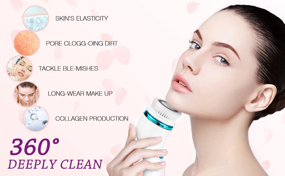 EXTRA Экстра чистая кожа: Эта Новейшая электрическая Очищающая щетка 3D sonic использует самые передовые и инновационные технологии очистки ионов. Эффективно отшелушивает, очищает и удаляет мертвые клетки, угри, прыщи и частицы пыли в засоренных порах. Кроме того, он может повысить кровообращение и эластичность кожи, затянуть свободную кожу, уменьшить морщины, уменьшить поры, сгладить тонкие линии