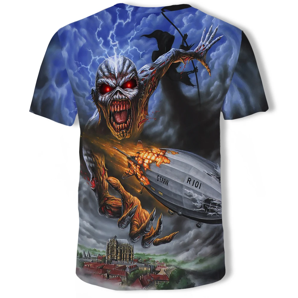 Футболка мужская с 3D-принтом черепа, тенниска из тяжелого металла,...