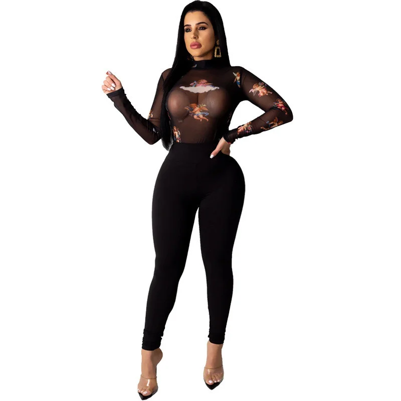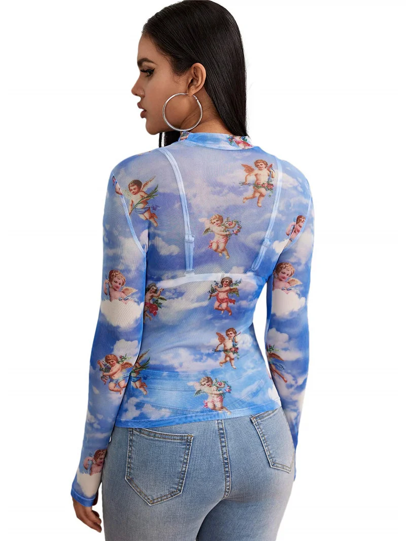 Сексуальная сетчатая Прозрачная Футболка с принтом ангела, привлека...