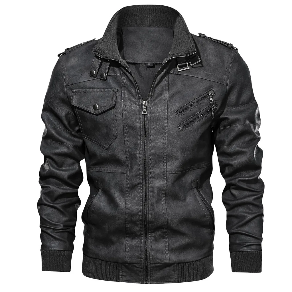 Мужская кожаная куртка, винтажная модная куртка из искусственной кожи с несколькими карманами, Осеннее повседневное байкерское мотоциклетное пальто из искусственной кожи # Y20