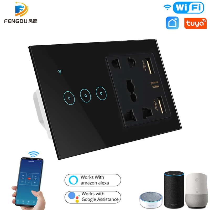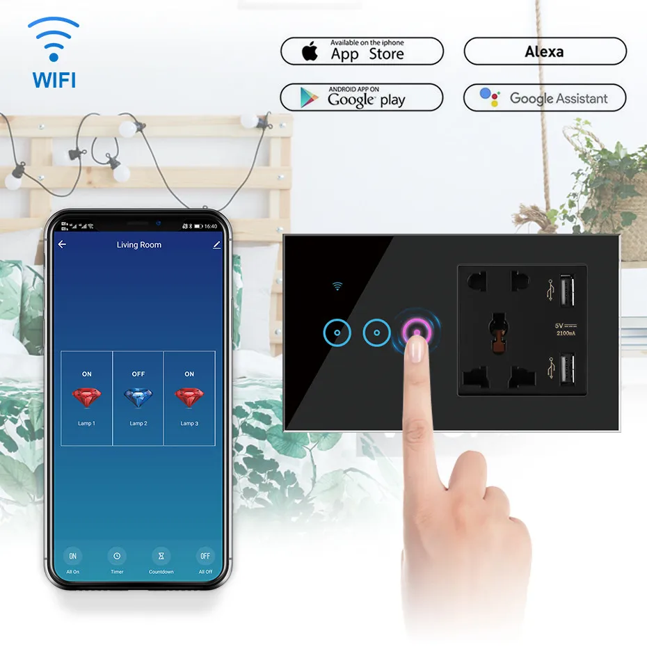 Умная розетка Tuya Smart Life, универсальная розетка с 2 USB-портами, Wi-Fi, 1, 2, 3 клавиши, настенный выключатель, работает с Google Home Alexa