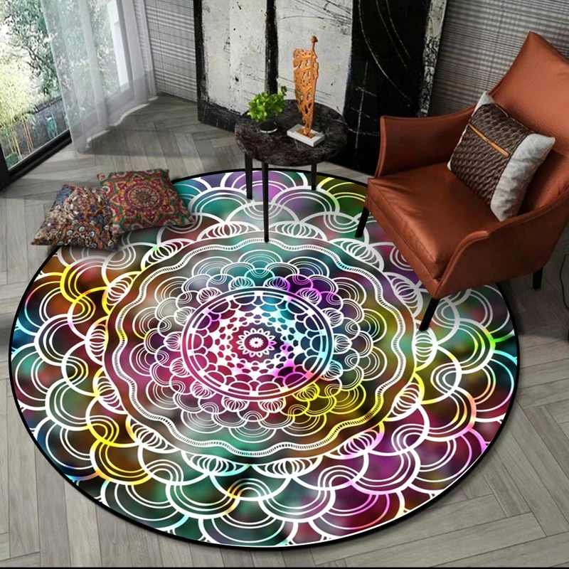 Круглый ковер с индийской мандалой, классический этнический геометрический цветочный ковер для гостиной, европейские ретро-Коврики для спальни, нескользящий напольный коврик