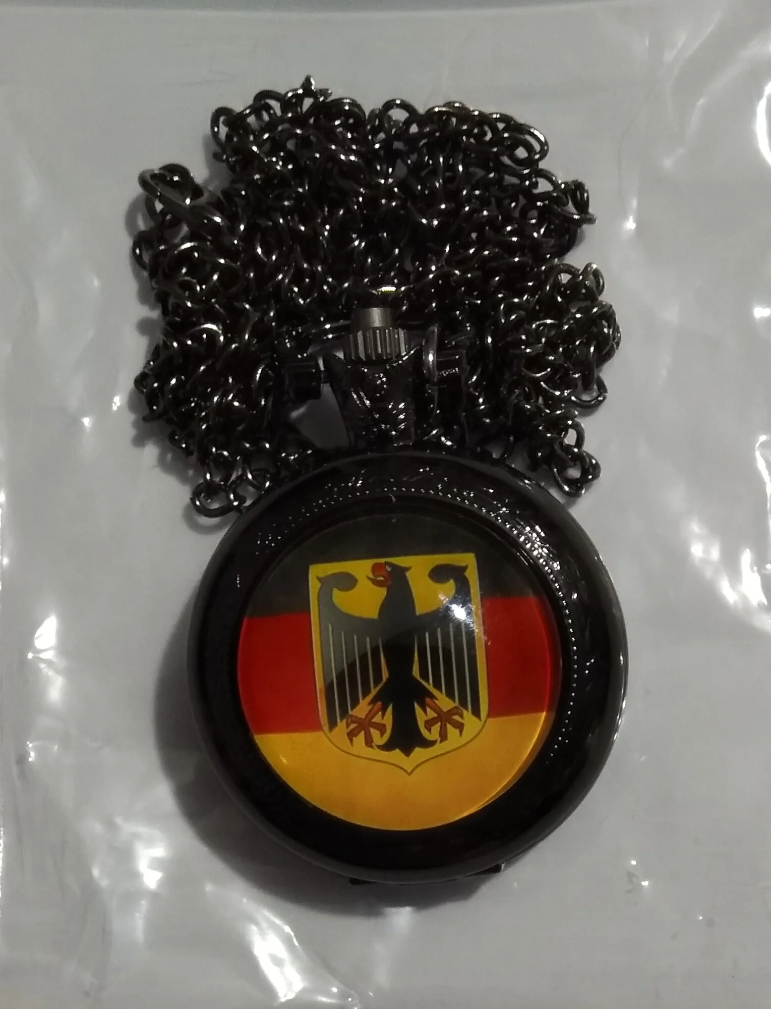 Винтажные черные кварцевые карманные часы с немецким флагом и гербом Германии, мужские и женские часы с подвеской, ожерелье, часы, подарки