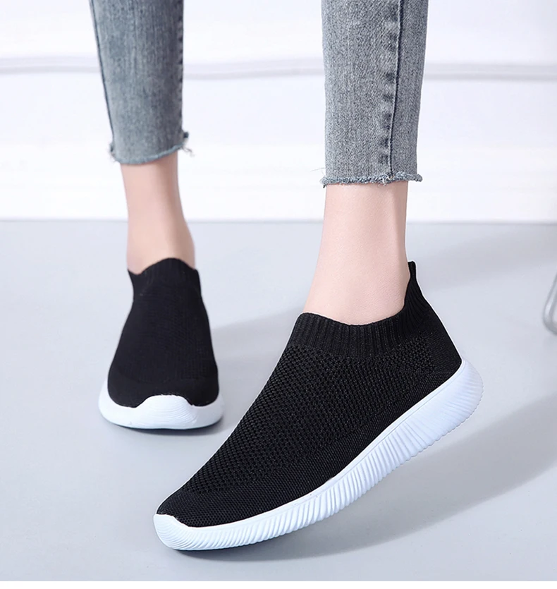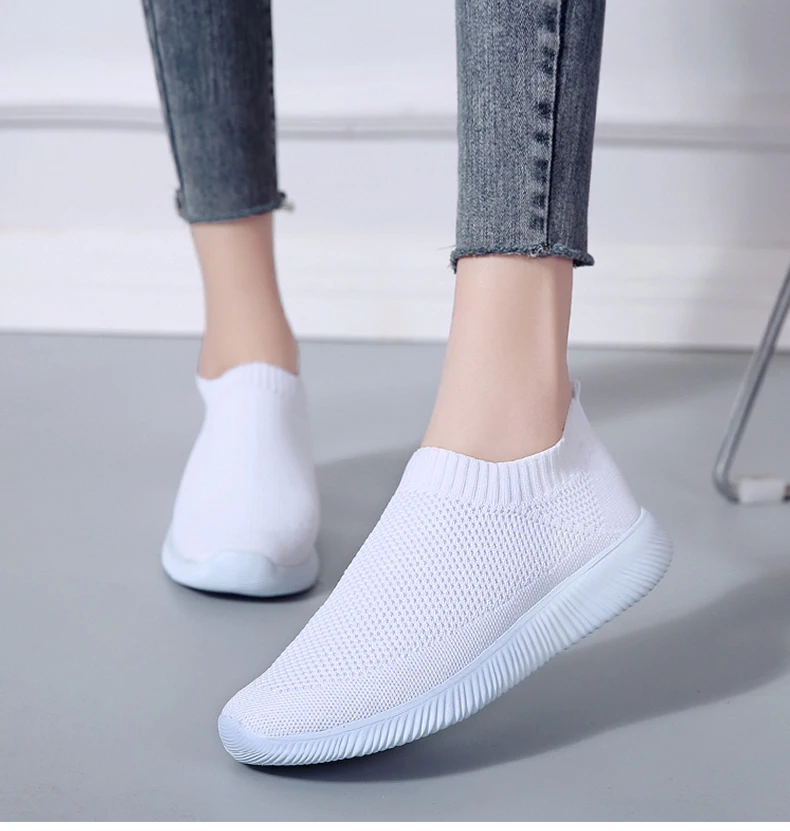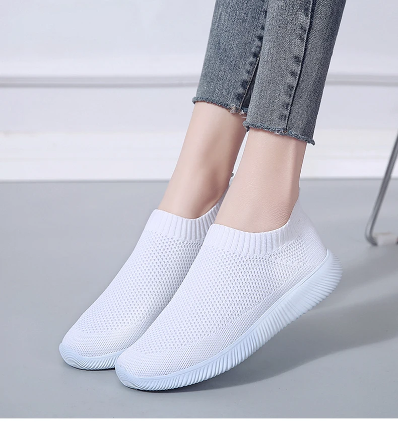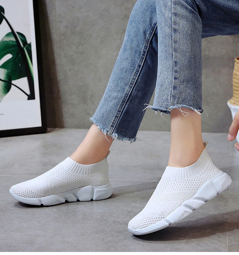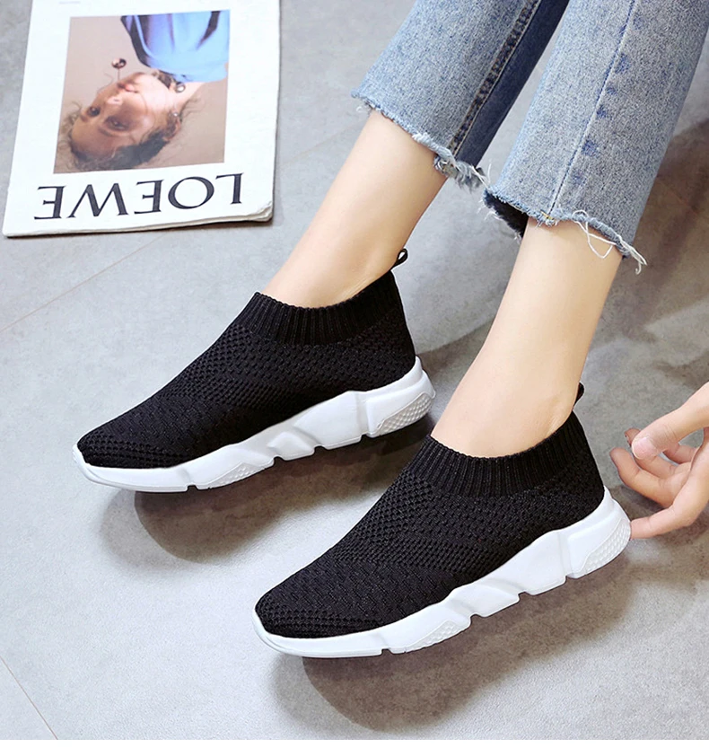Женская обувь; Кроссовки размера плюс; Женская дышащая Спортивная обувь из сетчатого материала; Женские слипоны на платформе; Кроссовки; Белые вязаные носки; Повседневная обувь