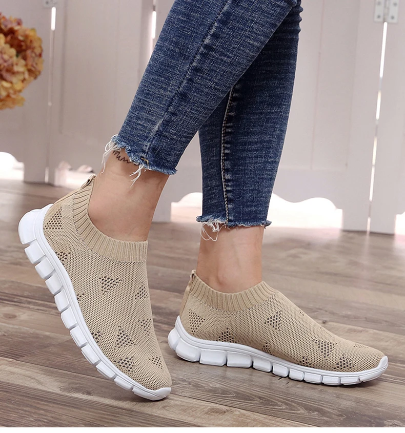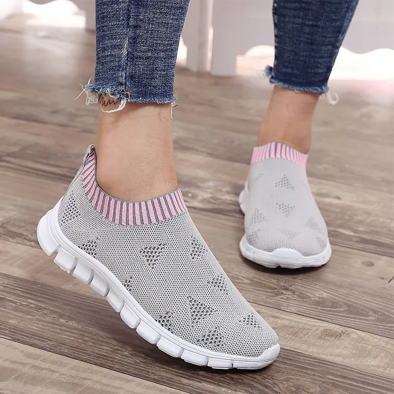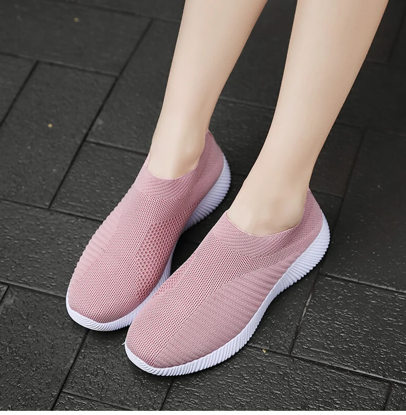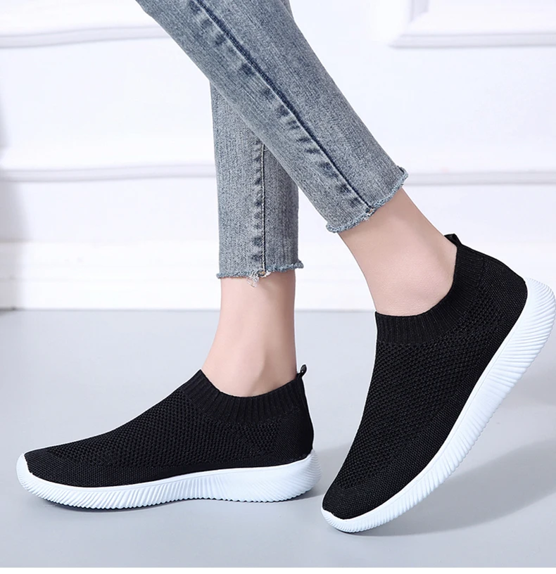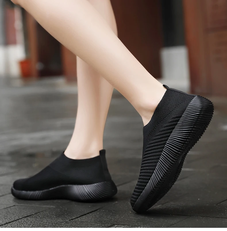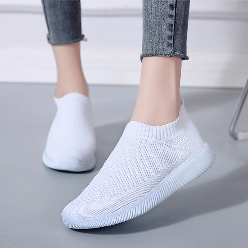 Женская обувь; Кроссовки размера плюс; Женская дышащая Спортивная обувь из сетчатого материала; Женские слипоны на платформе; Кроссовки; Белые вязаные носки; Повседневная обувь