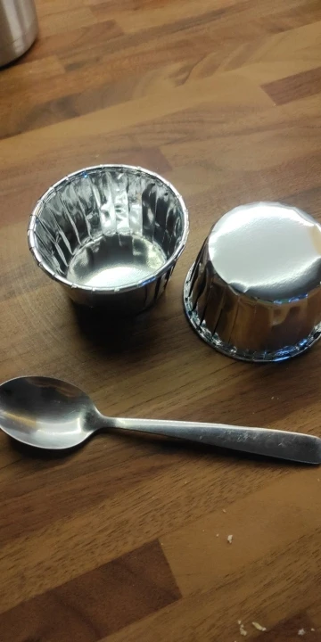 Я хотел бы получить больший размер, этот размер соответствует тому же описанию, очень маленький Текстура снаружи-бумага, а внутри-глянцевая, как олово, который я использовал для расчета, кажется очень легким оловом, я думаю, что это хорошо для печи, Я думаю.