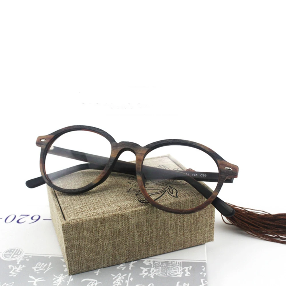 Очки для мужчин и женщин в оправе из ацетата, с круглыми деревянная...
