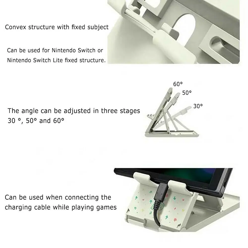 Характеристика: 100% новый товар высокого качества. Функция: идеальная подставка для Nintendo Switch & lite, также может использоваться в качестве подставки для мобильного телефона. Преимущество: регулируемый дизайн отвечает вашим личным требованиям различной высоты во время игры. Прочный: Изготовлен из АБС-пластика, с двумя зубцами для обеспечения безопасности вашего устройства на месте, стабильный. Специальный: Легкая Зарядка для вашего гладкого и лучшего игрового опыта. Удобно: компактный и складной, можно легко использовать и хранить в любой сумке. Характеристики: Предназначен для переключателя: Эксклюзивный дизайн, чтобы предложить специализированную подставку для вашего геймпада переключателя. Вы можете использовать его для хранения и отображения вашего переключателя. (Кабели и консоль не входят в комплект) Регулируемые углы: Подставка поддерживает дисплей с несколькими углами, чтобы удовлетворить ваши личные предпочтения и комфорт во время игры. Можно регулировать угол и складывать Не только держатель для Nintendo Switch, но и для iphone xiaomi samsung huawei и других смартфонов для просмотра видео и многого другого. Удобный для путешествий и портативный; Его можно легко упаковать, когда он не используется.