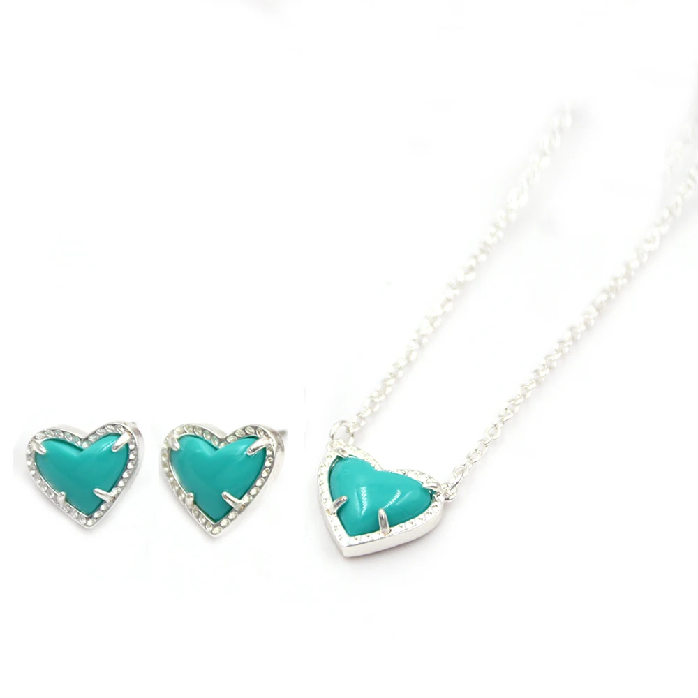 Женские Геометрические серьги-гвоздики и ожерелье, ювелирные украшения, с розовыми сердечками из смолы, друзами, цветными драгоценными камнями, 2020