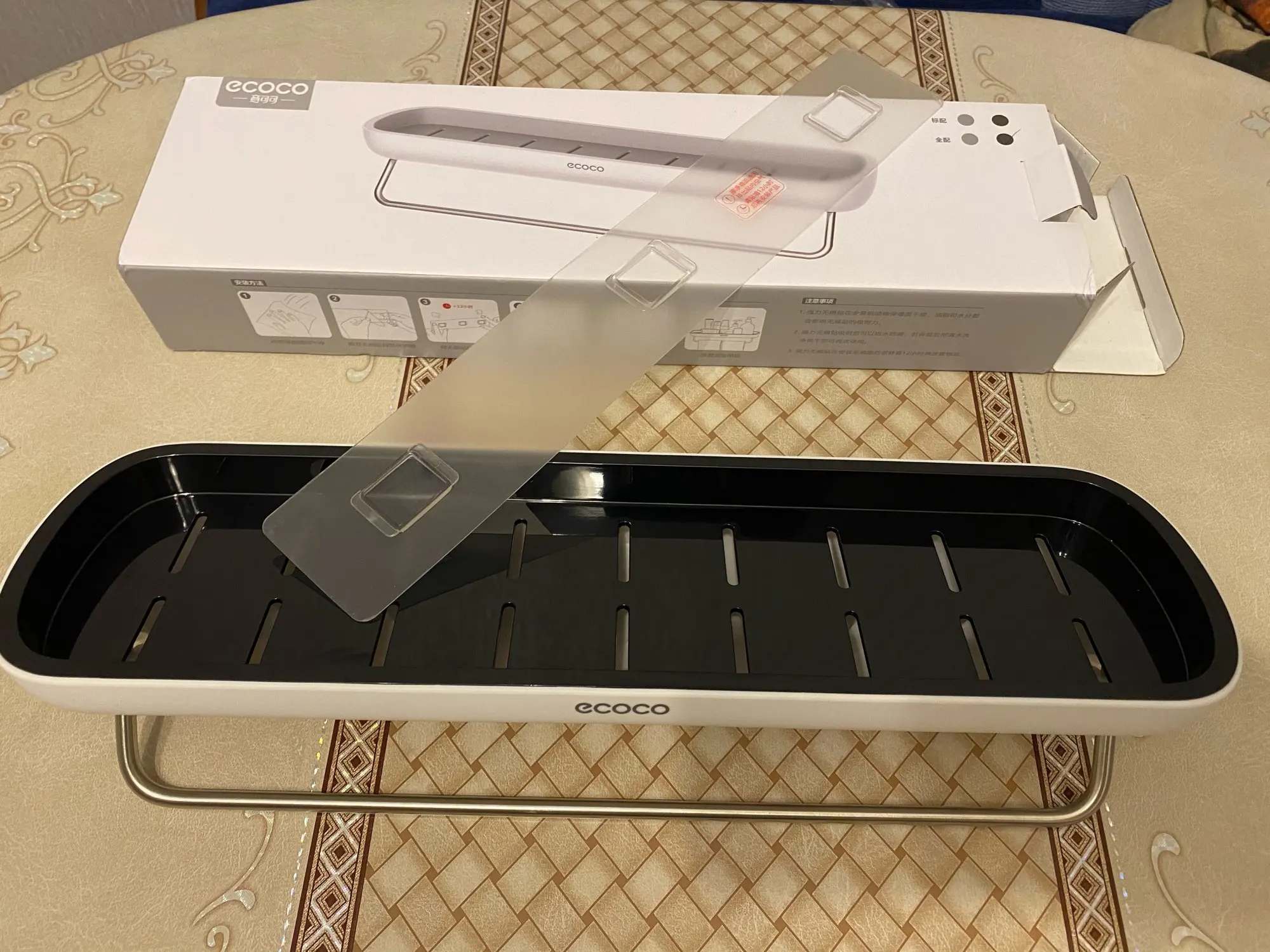 Шикарная полка. Идеально вписалась в интерьер. Выглядит не дёшево, пластик прочный. Упакован был хорошо. В Украину доставили за 14 дней. Клейкая лента держать будет намертво. После того как приклеили нужно дать постоять без полки 12 часов для лучшей сцепки. Рекомендую!