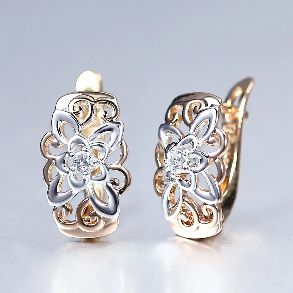Женские серьги-гвоздики из розового золота 585 пробы с цветами, рос...