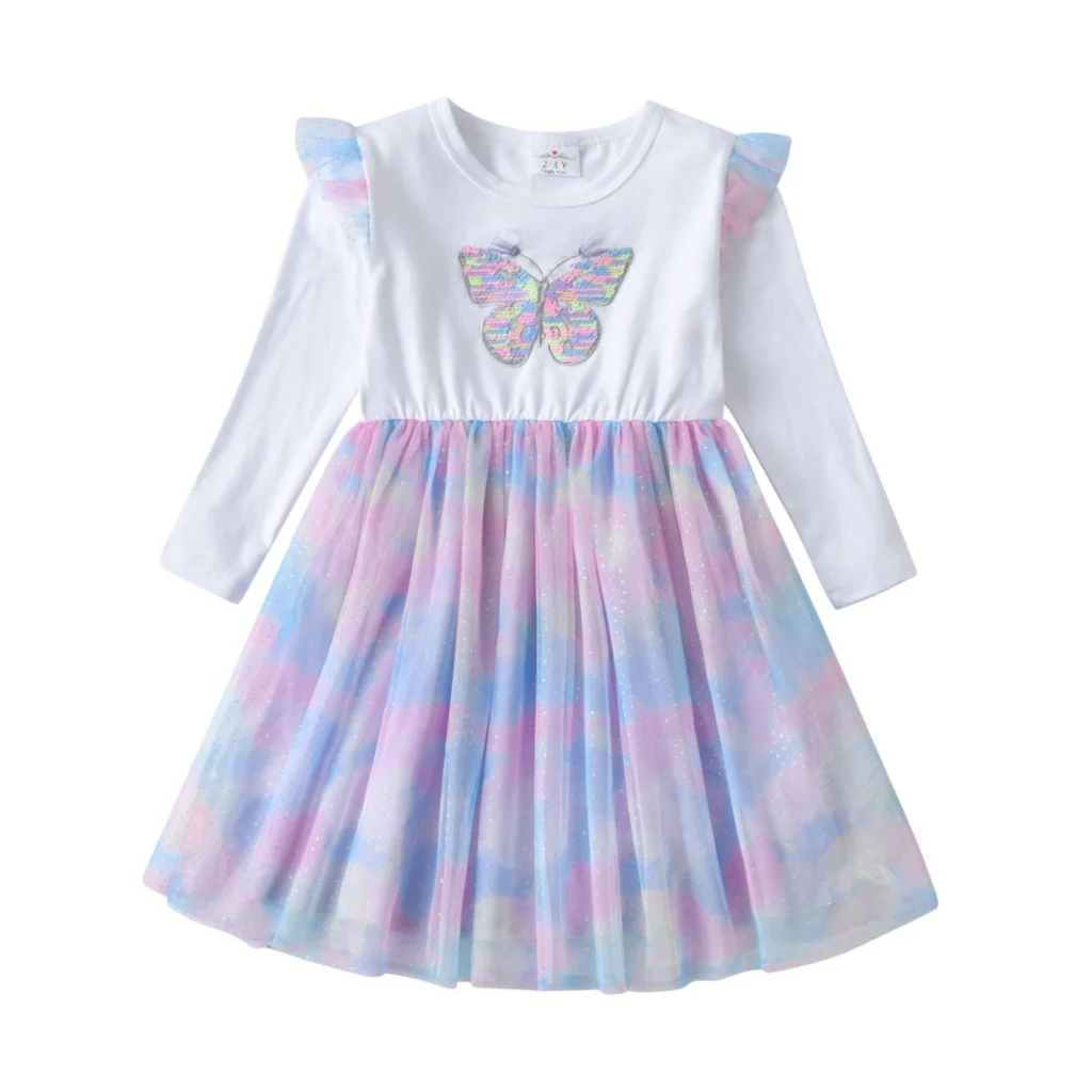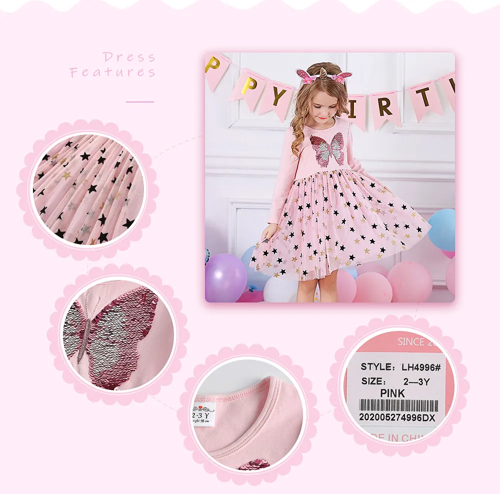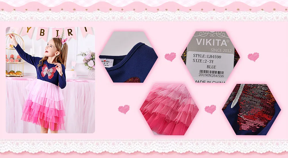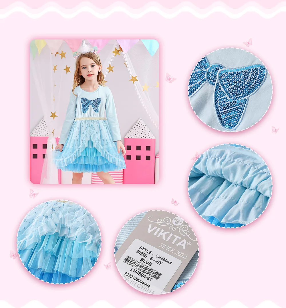 VIKITAосеннее платье для девочек; Детские платья с длинными рукавами, бабочка с блестками; Платье принцессы для маленьких девочек; Вечерние платья на день рождения