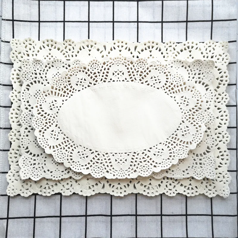 100 шт. столовых прямоугольник на день рождения Празднование, вечеринка, подарок Настольный коврик торт Lace Бумага Doyleys коврики Украшение стола аксессуары