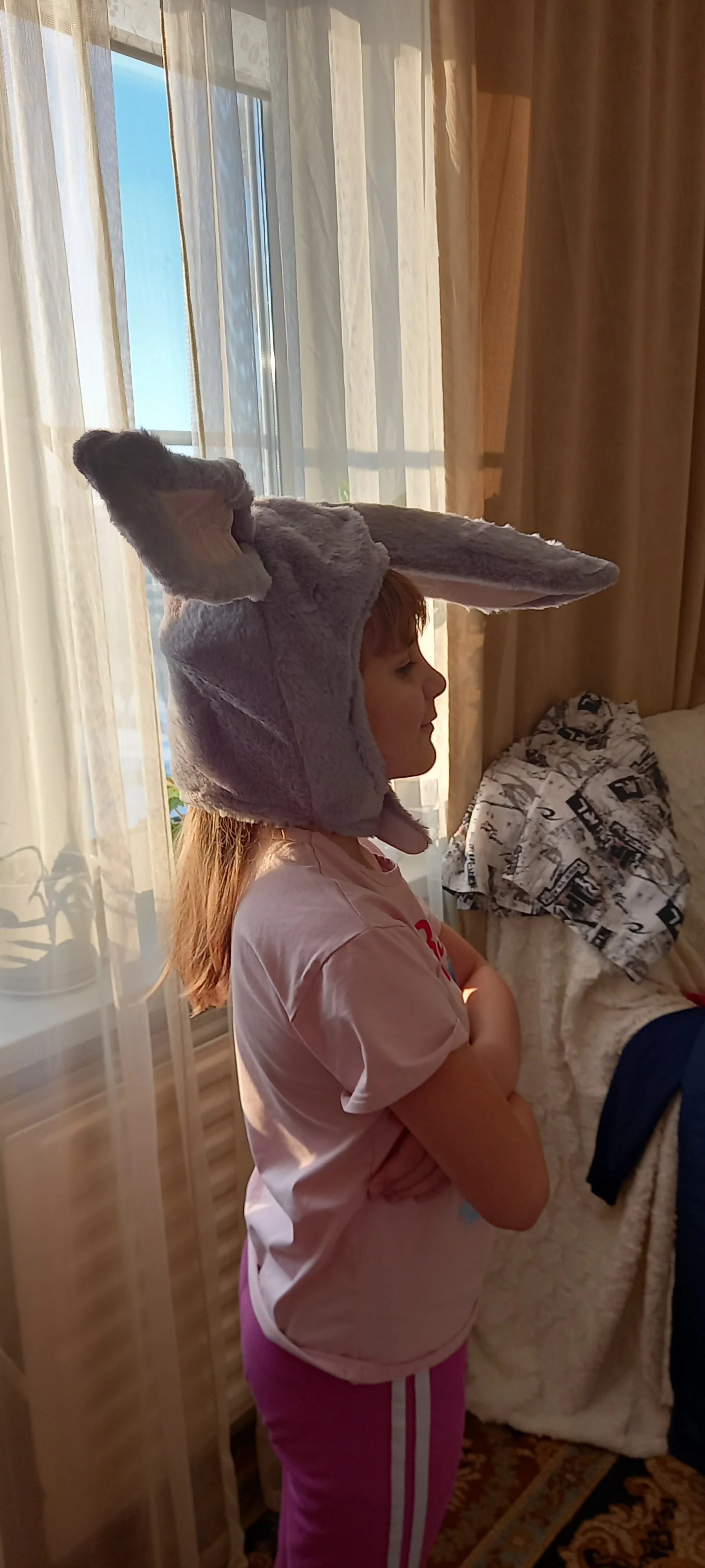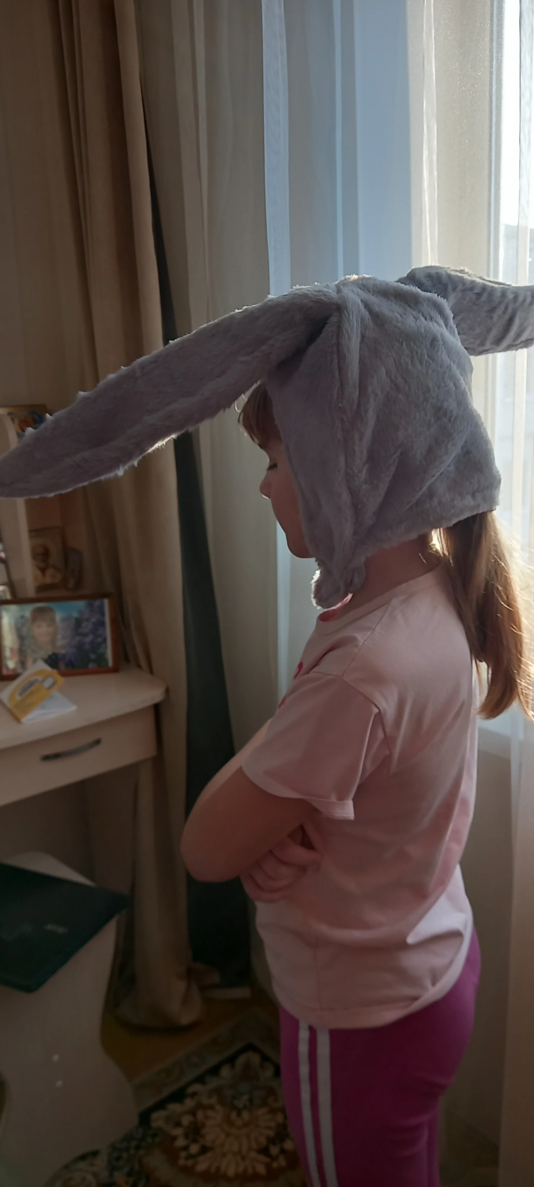 не плохая шапочка ,ушки стоят .На уровне лба конечно хотелось бы что она была немного больше , а то немного коротковата ,ну да ладно.