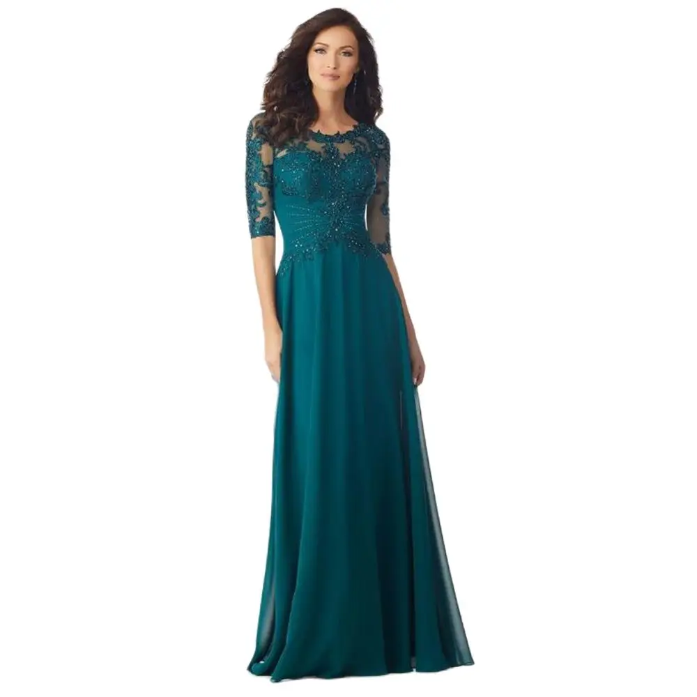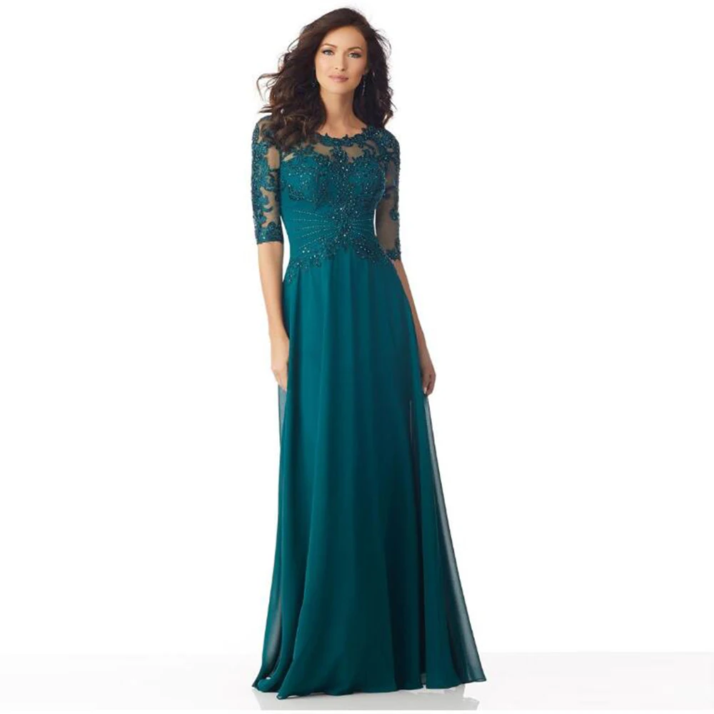 Платье для матери невесты, длинное платье для матери жениха с полурукавами и бисером, 2021