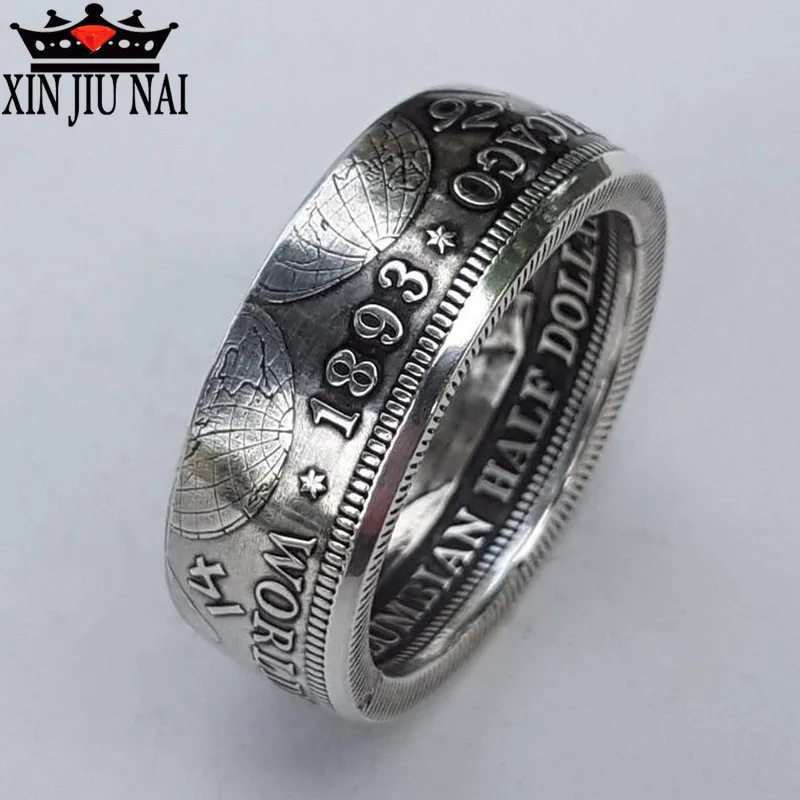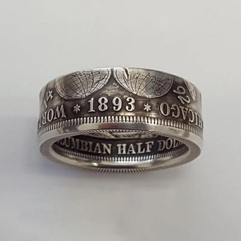 Кольцо мужскоеженское, в стиле ретро, с гравировкой доллара 1893 Моргана