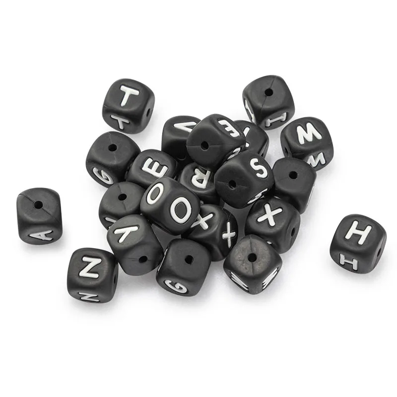 TYRY.HU 10 шт. черные силиконовые бусины с буквами 12 мм Алфавит детский Прорезыватель бисер без бисфенола А персонализированные именные цепочки для соски аксессуары