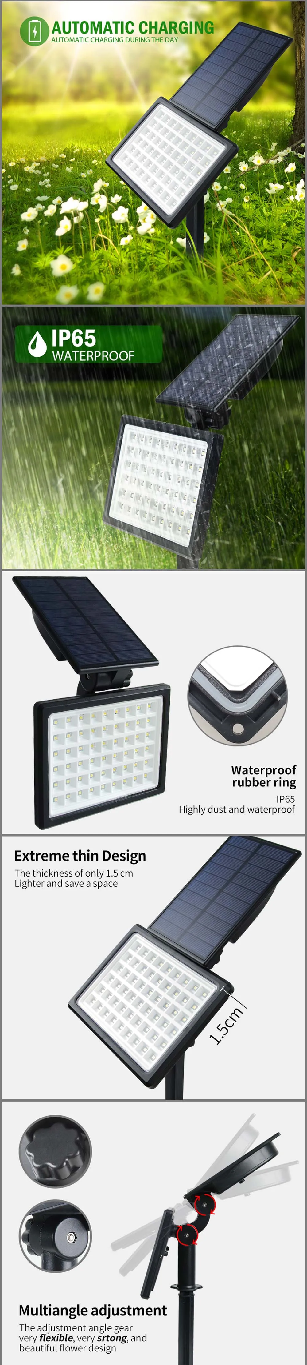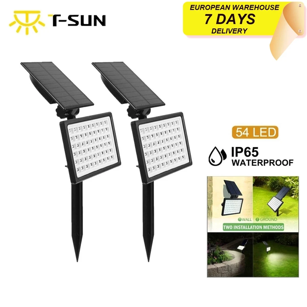 T-SUN 1-2 шт. 54 светодиодный уличный солнечный светильник IP65 Регулируемый Солнечный Точечный светильник садовый декоративный светильник 3000k6000k Солнечный настенный светильник