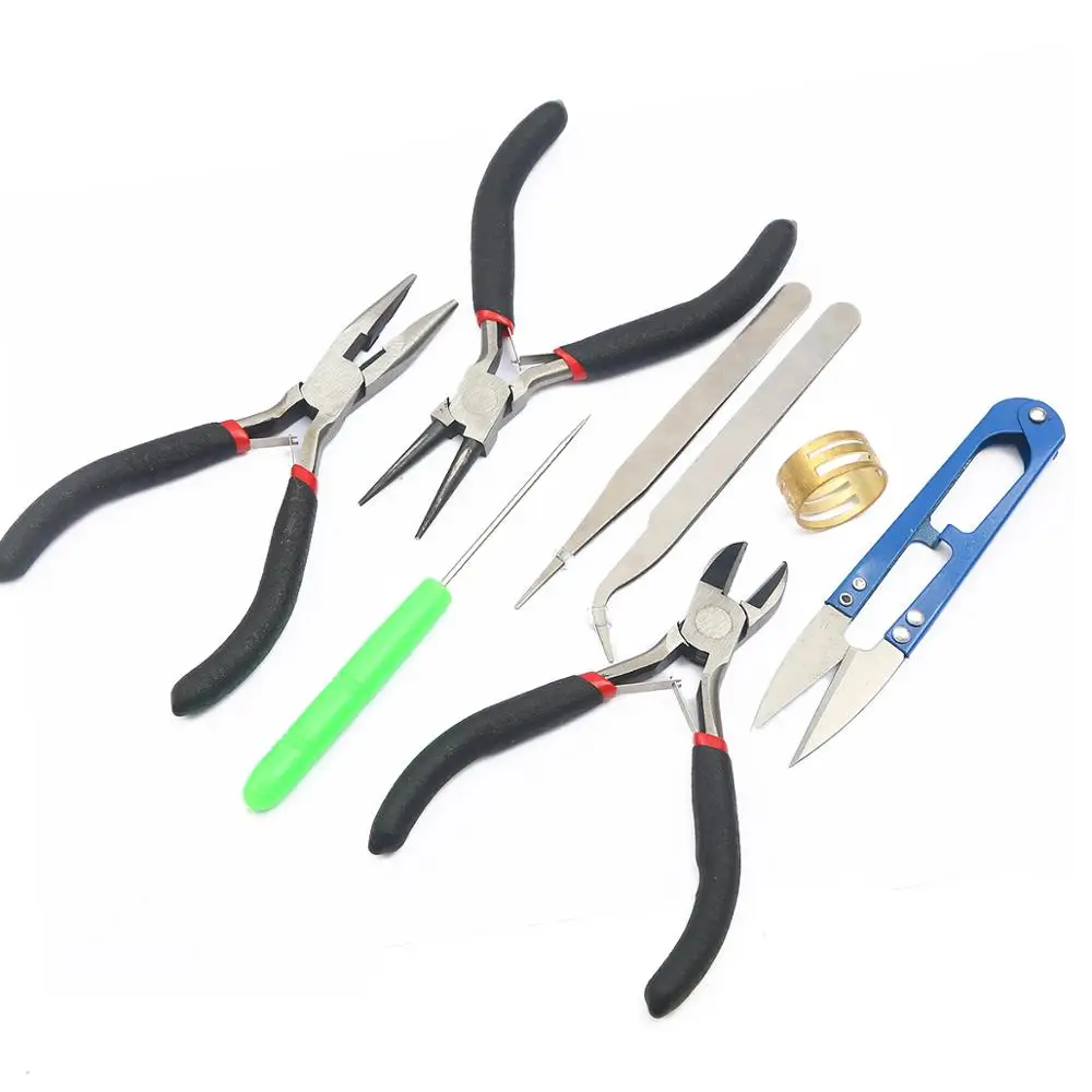 1 Набор ювелирных инструментов с Plies и ножницами набор инструментов для бисероплетения для самостоятельного изготовления ювелирных изделий (плоскогубцы + Пинцет + ножницы + кольцо + шило)