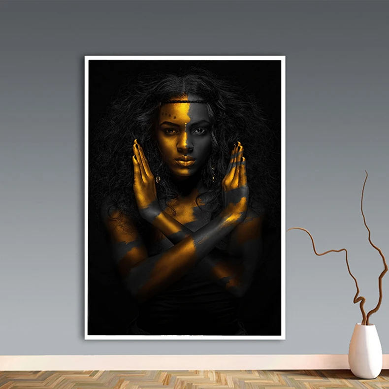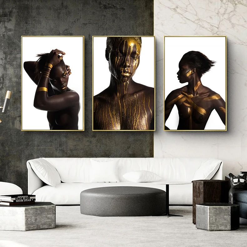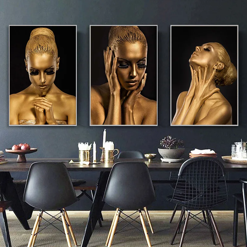 Золотисто-черная наклейка на стену с рисунком телесной женщины