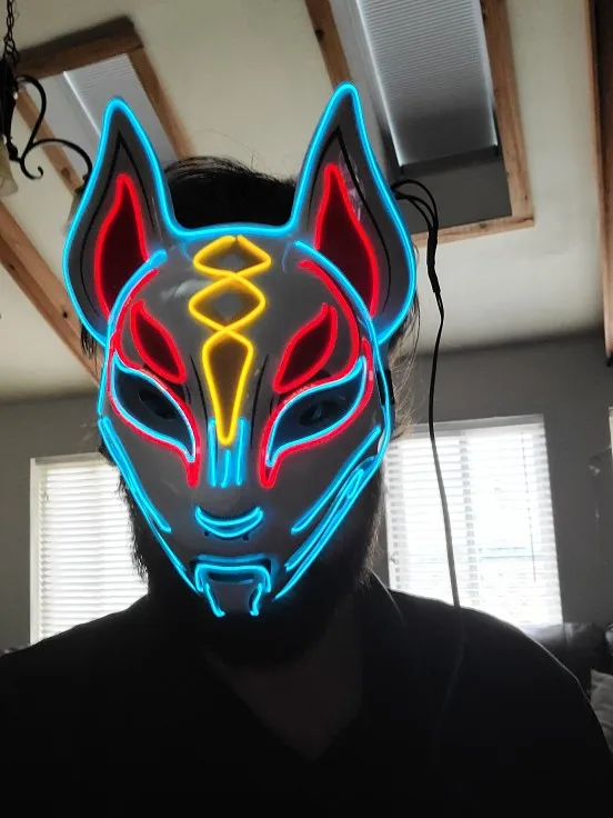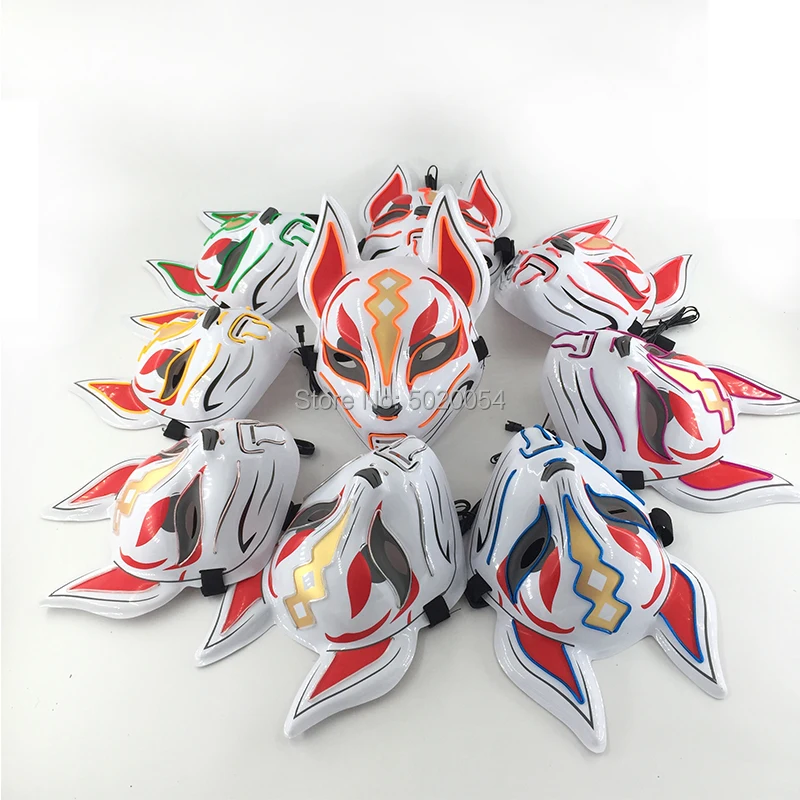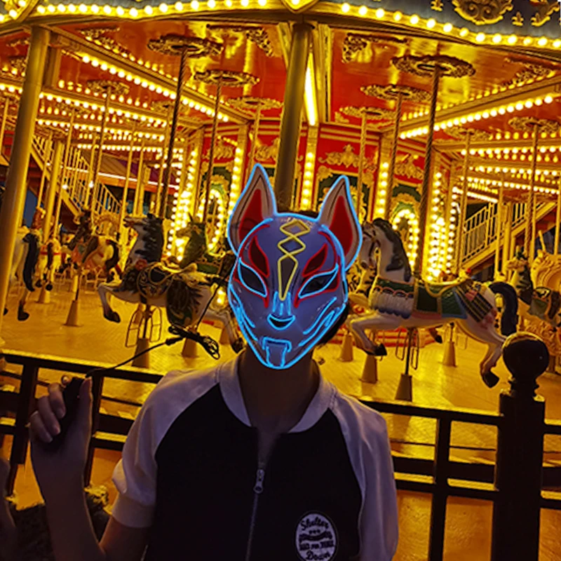 Светящаяся маска для Хэллоуина EL Wire, светящаяся маска, для японского аниме, косплея, светодиодный костюм, маска лисы, для карнавала, вечеринки