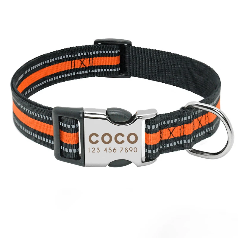 Светоотражающий собачий ошейник, персонализированный ошейник для питомцев, на заказ, ошейник для щенка, кошечка, ID ошейник для маленьких средних и больших собак, Выгравированный