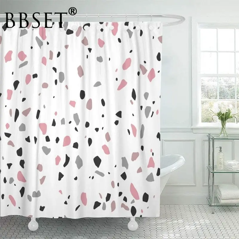 Занавеска для душа, из полиэстера, с цветными камнями, терраццо мрамор узор, водонепроницаемая, разные размеры