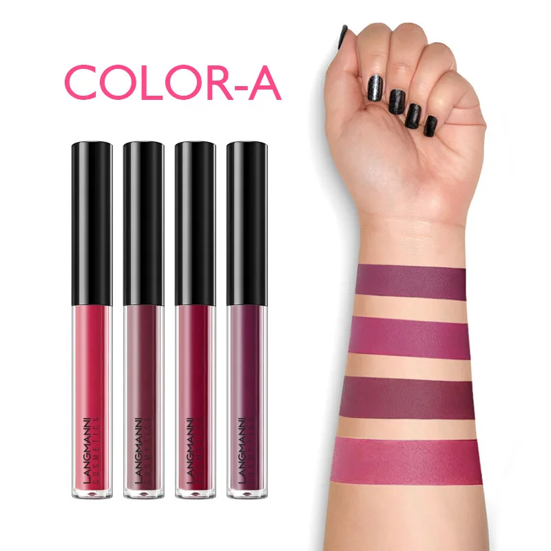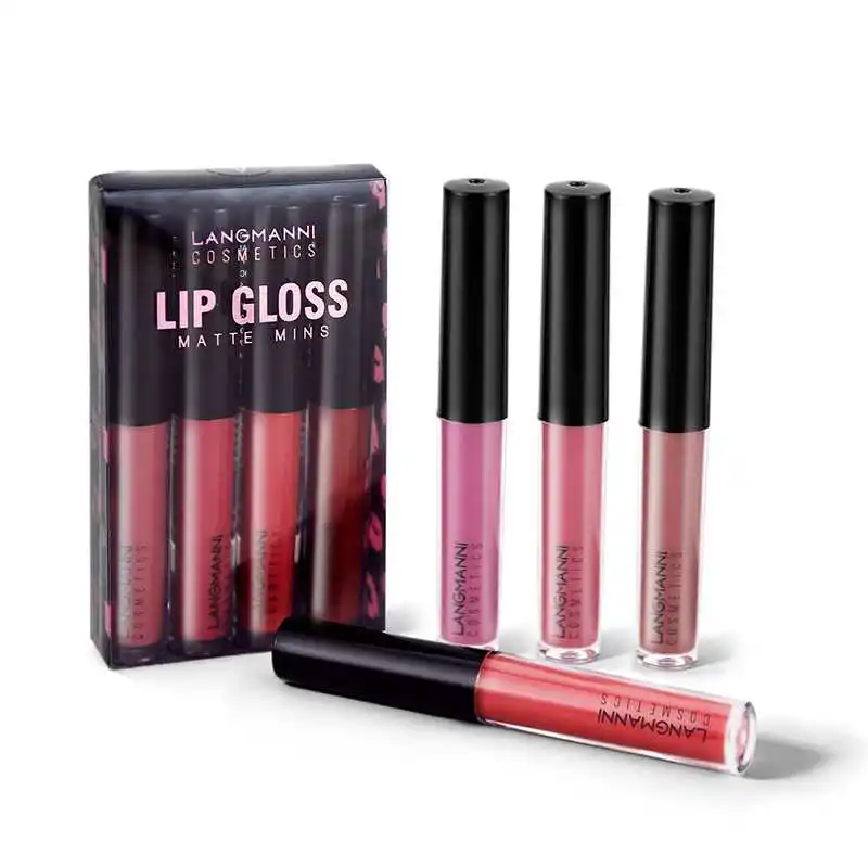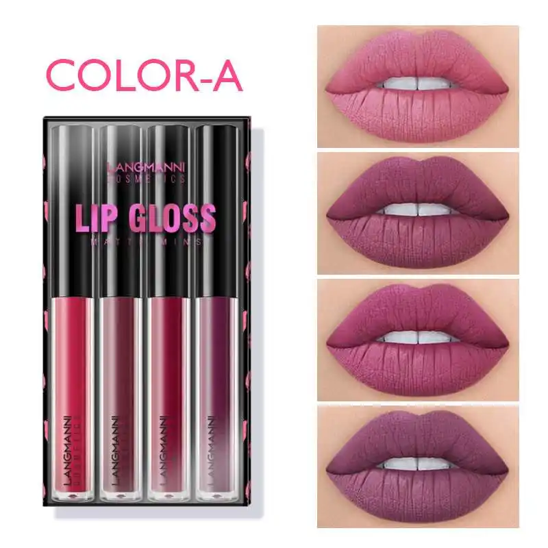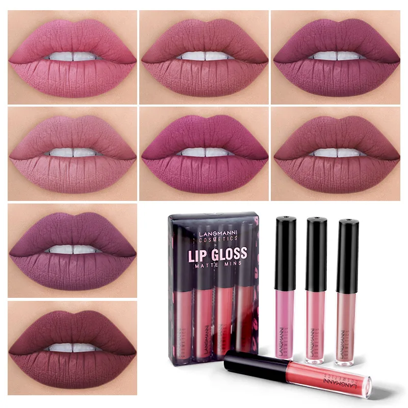 4 шт.компл. губ глянцевые наборы длительное увлажнение водостойкий антипригарный стакан губ глазурь матовая губная помада женский макияж сексуальный блеск для губ TSLM1
