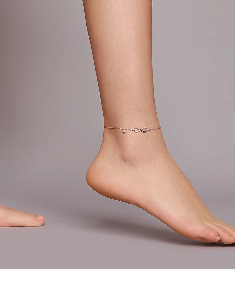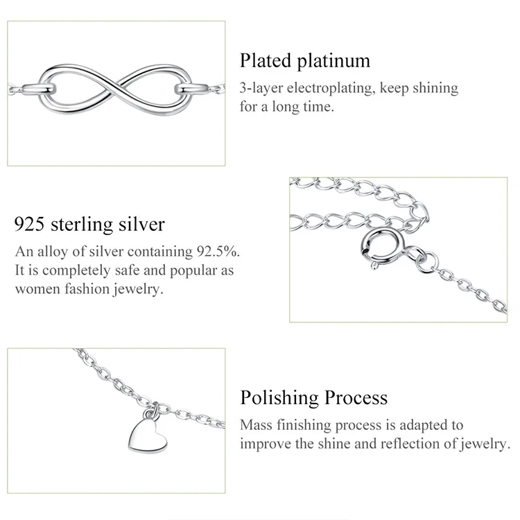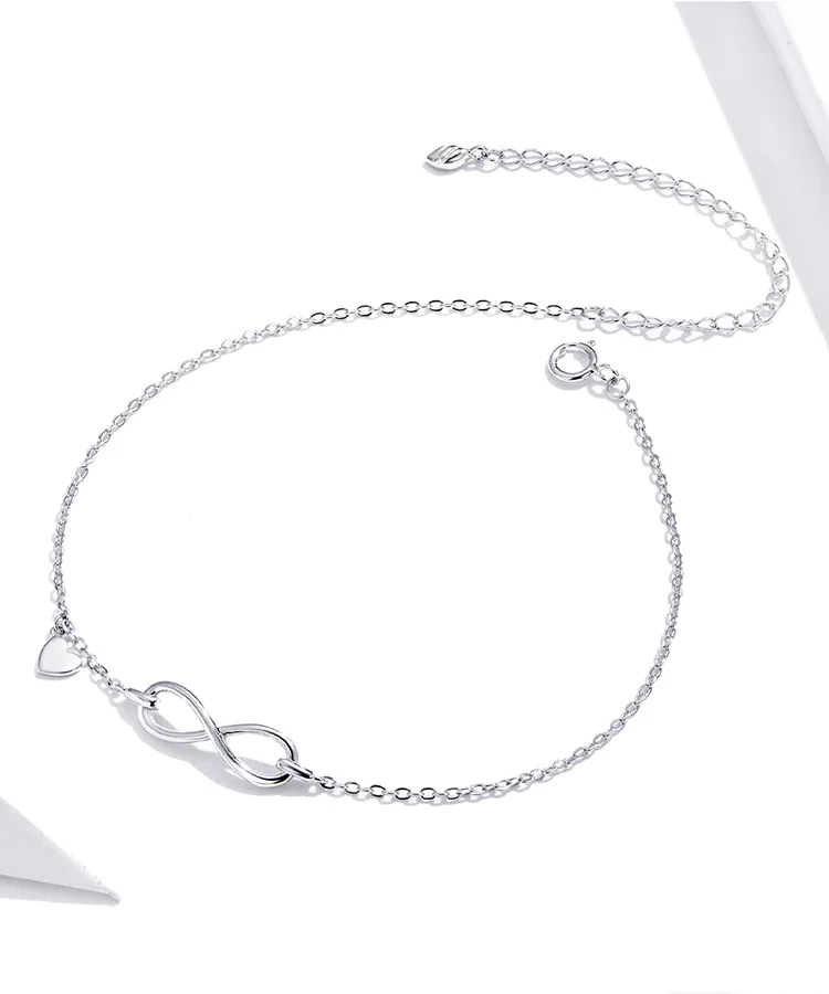 Браслеты-анклеты BISAER Infinity браслеты на ногу Love для женщин, ножные ювелирные изделия из 925 пробы серебра с геометрическим узором в форме сердца