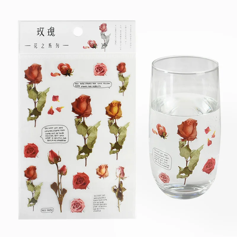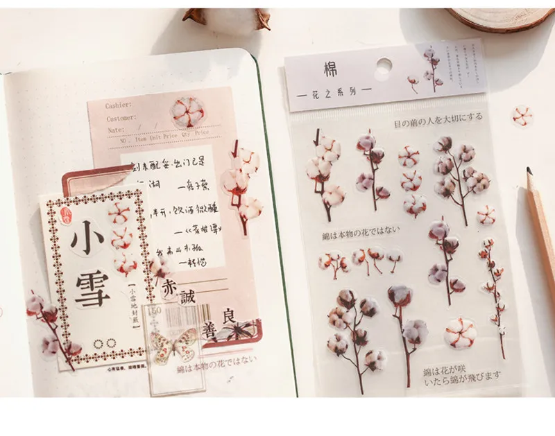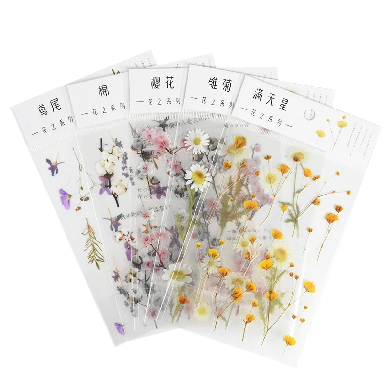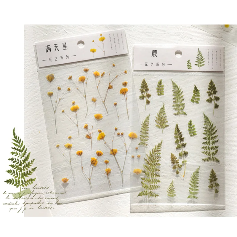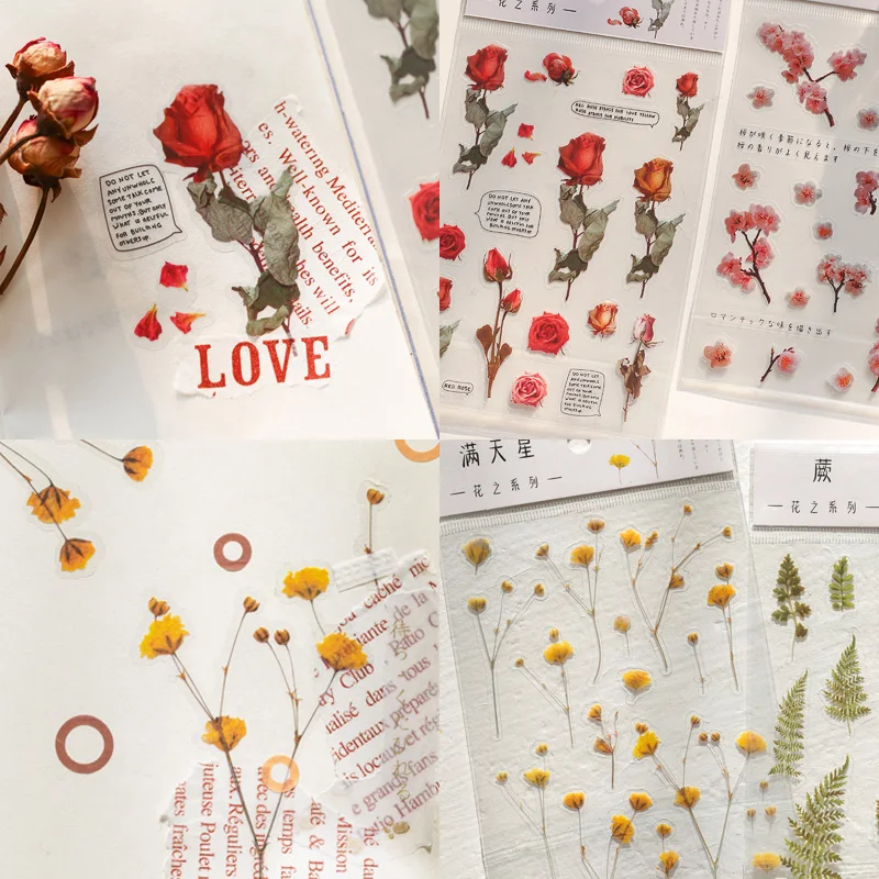 5 листов прозрачных наклеек 12 видов конструкций ромашки розы вишни наклейки с цветами DIY ПЭТ материал цветы листья растения наклейки