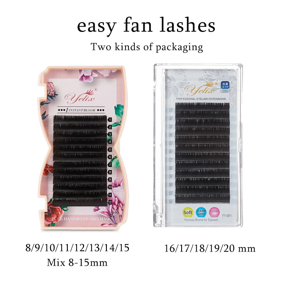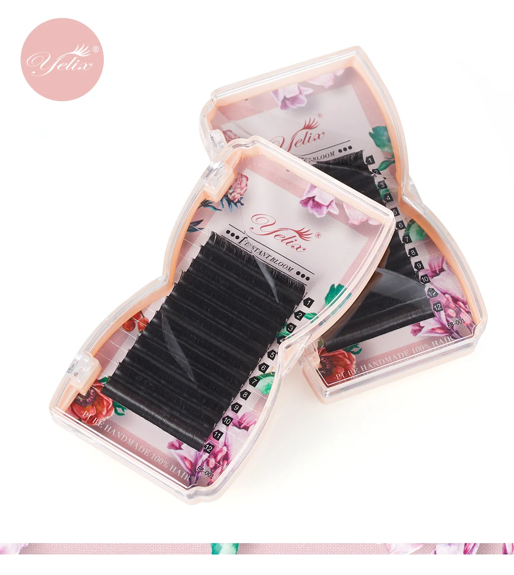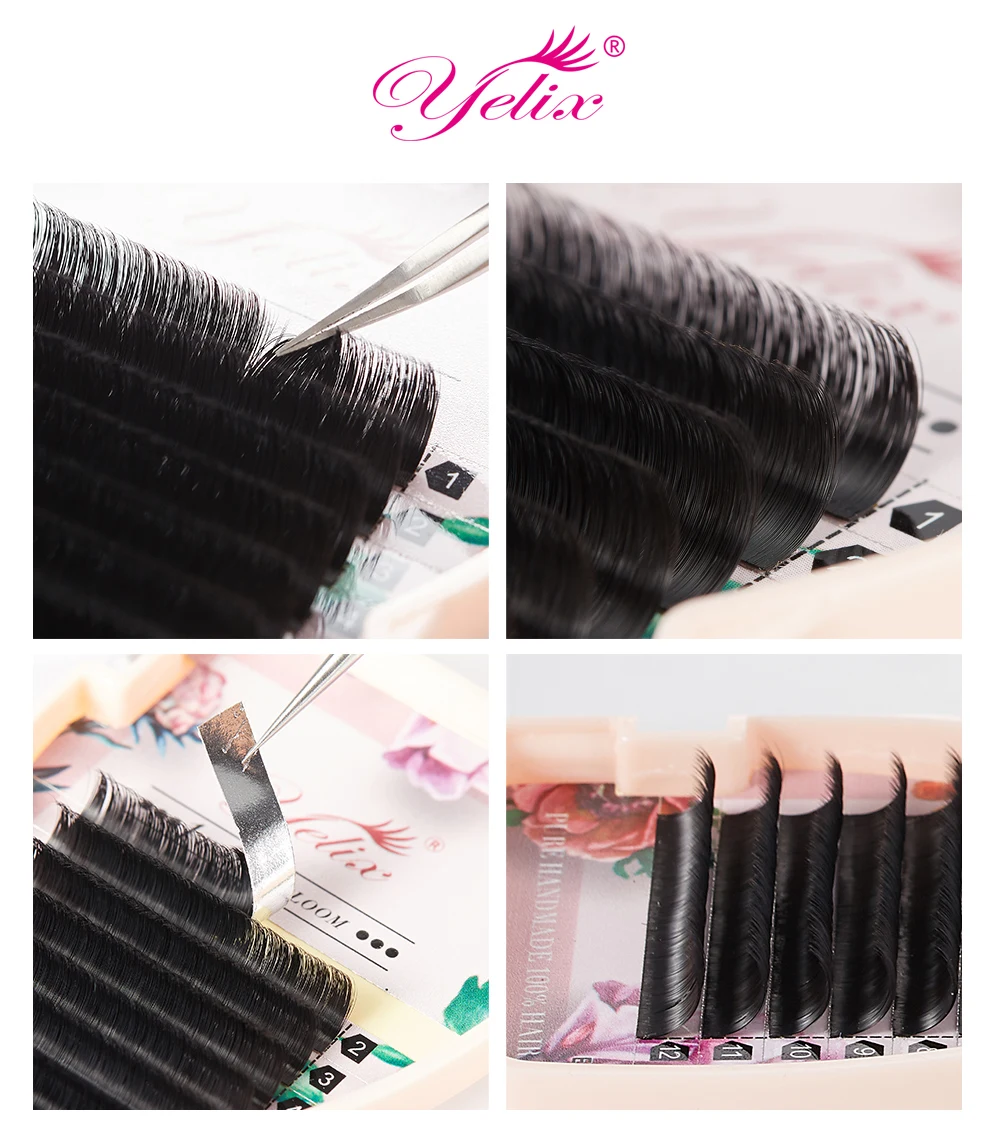 YELIX легко дуя, оптовая продажа ресниц для наращивания 16-20 мм объем ресниц из мягкой натуральной наращивание ресниц легко вентилятор дропшиппинг метка частного назначения