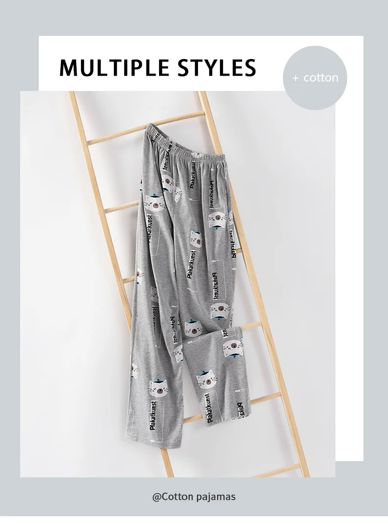 Сезон весна-осень; Одежда для дома с изображениями героев мультфильма брюки женские трикотажные хлопковые длинные домашние брюки из овечьей шерсти, для сна, нательное белье на каждый день с принтом пижамы размера плюс M-4XL