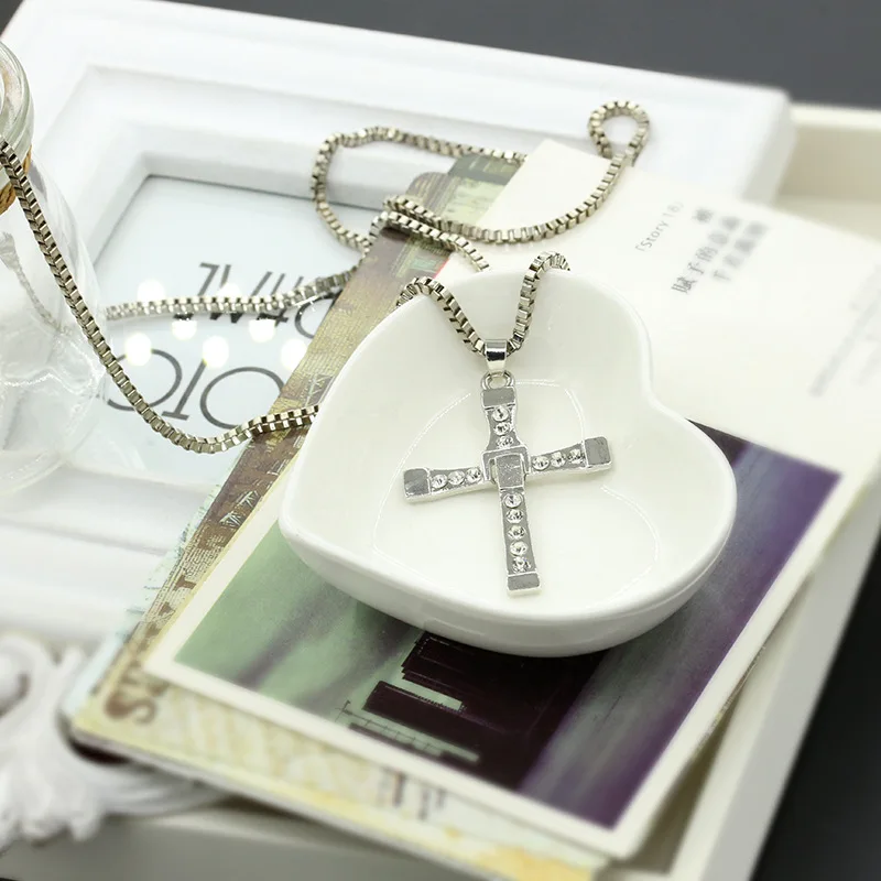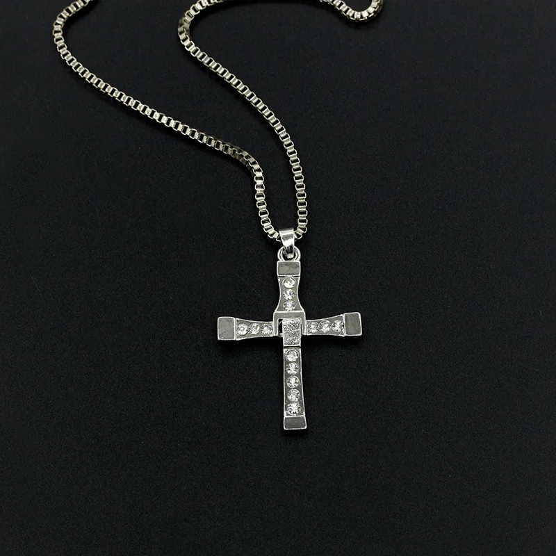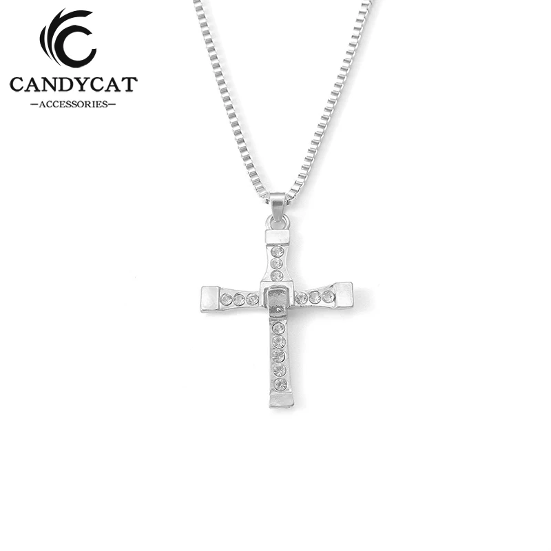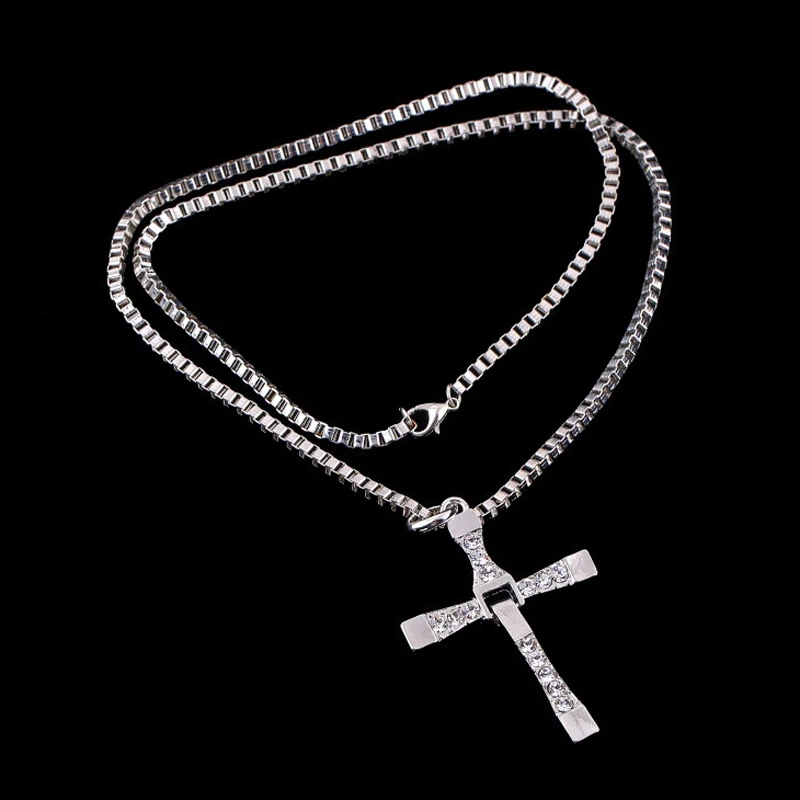 Ожерелье с геометрическим крестом женское, ожерелье с подвеской в виде фильма Форсаж, массивная цепочка до ключиц с кристаллами